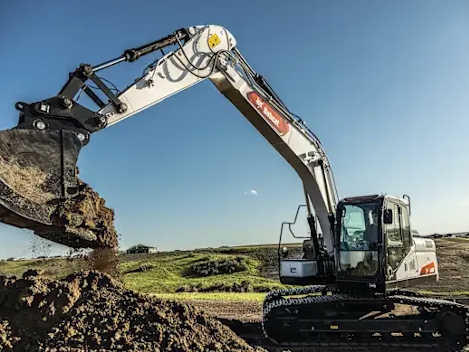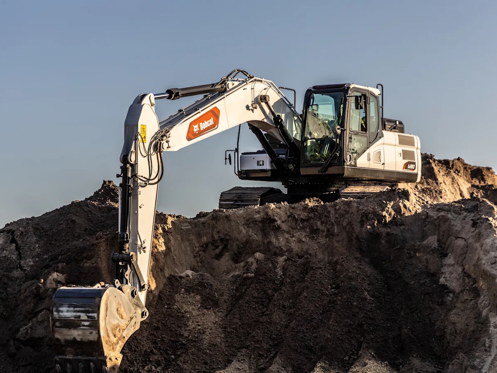 - Bobcat large excavators deliver the comfort you need for difficult work. The cab is roomy, quiet and features a suspension system that dampens vibration and ground feedback. Its pressurized seal minimizes dust and debris while isolating operators from noise outside the cab. The seat delivers superb adjustability and excellent lumbar support, while impressive visibility and simple controls make work more enjoyable.