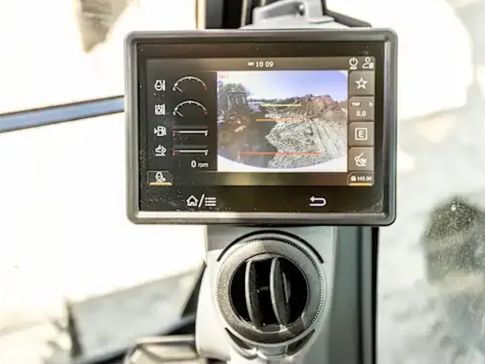 The standard 8-inch touch display provides machine data, warnings, camera views, plus automatic night view for easy navigation in low light
