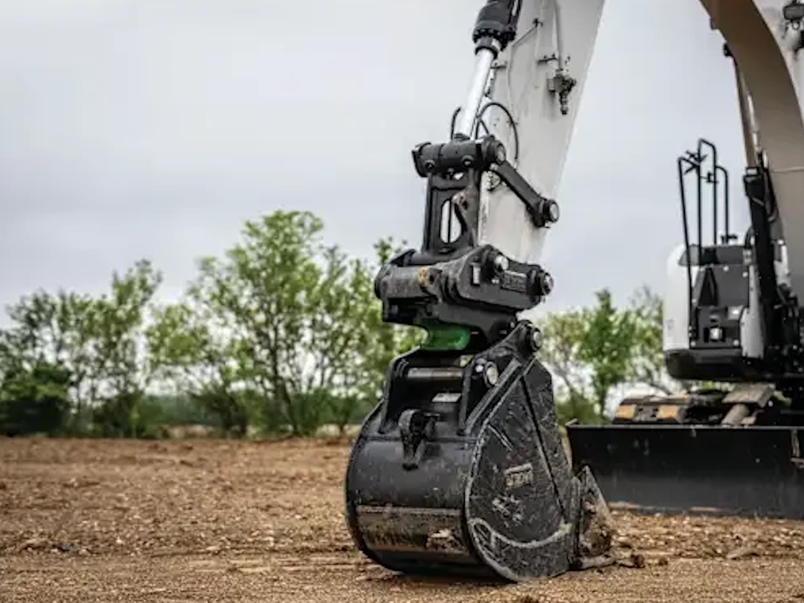 - Heavy-duty, wear-resistant plates at the end of the machine arm increase durability at the bucket pin-up point.