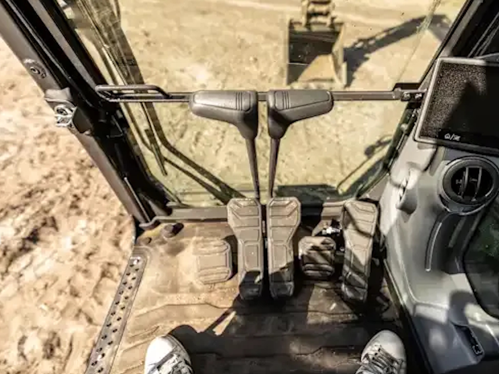 - The large excavator cab offers luxury-level comfort with a standard air-suspension seat upholstered in high-quality material. The seat is also heated to provide another level of comfort when working in cold weather.