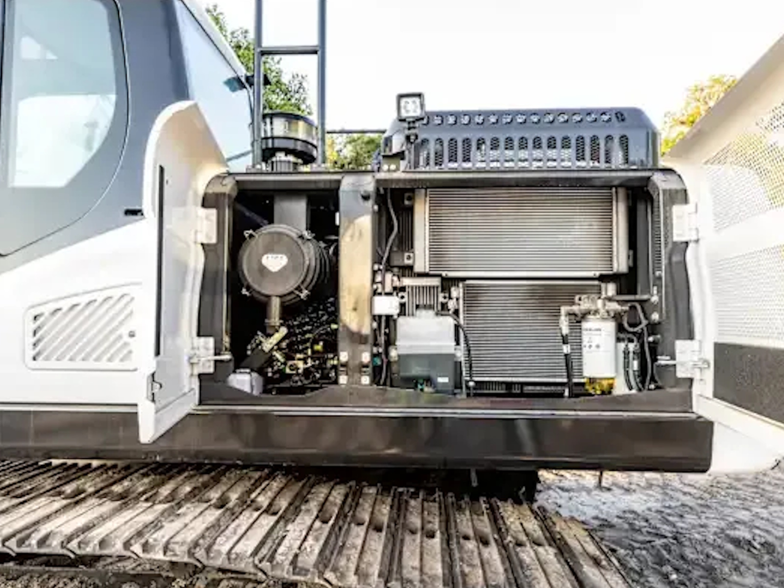 - The hydraulic oil cooler’s variable speed cooling fan adjusts its speed as required by the demands on your excavator. This maintains optimal temperature in severe working conditions while reducing noise and increasing efficiency in lighter-duty situations.