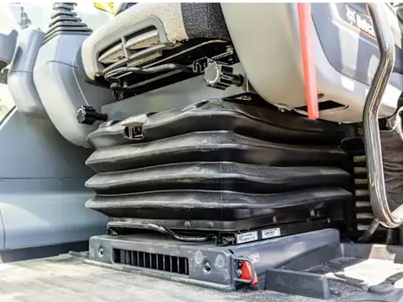 The air-suspension seat has a wide range of adjustment points to help any operator find optimal comfort.