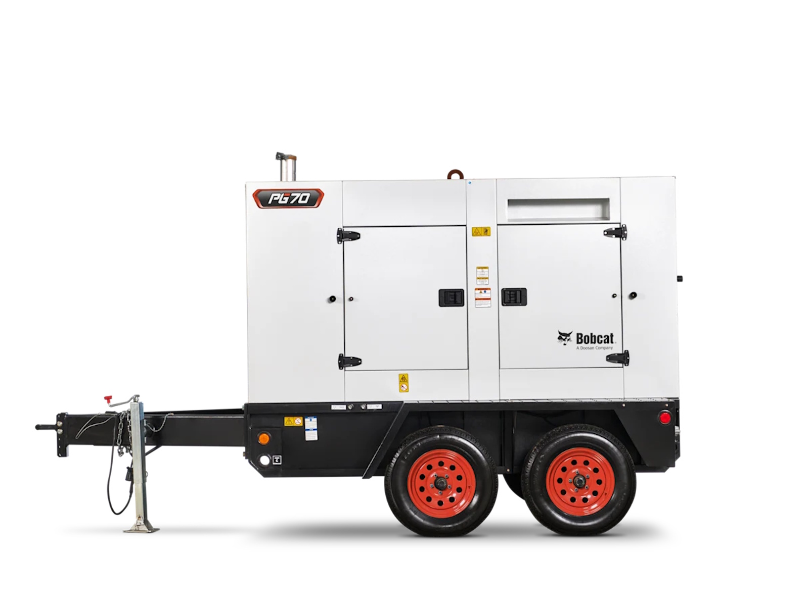 The compact Bobcat PG70 portable generator was engineered to provide ultimate reliability, low total cost of ownership and unmatched serviceability. A true towable generator, the PG70 boasts tough running gear and a hardened galvanized steel enclosure that can stand up to the harshest environments. It’s also one of the quietest portable generators in its class.