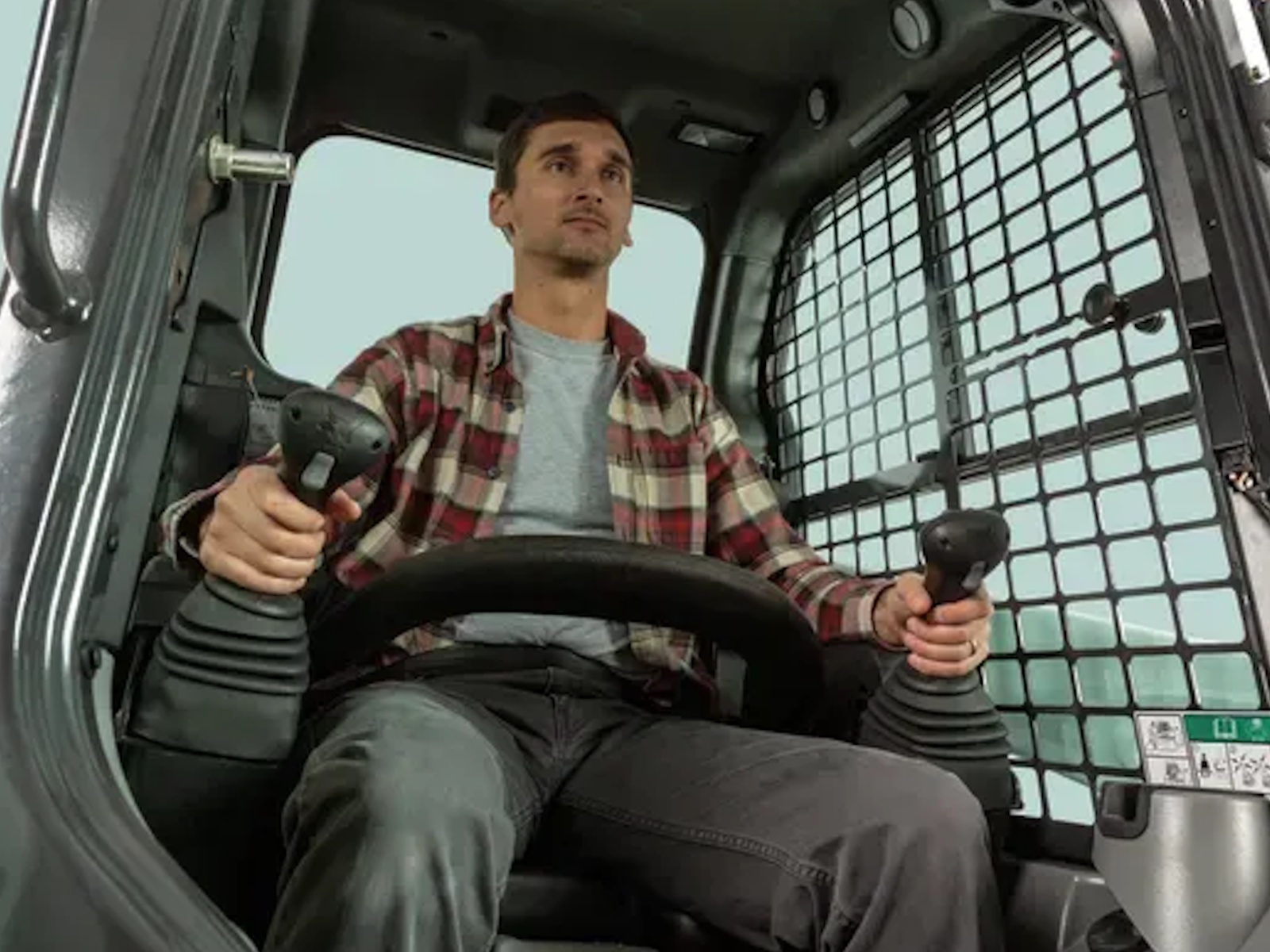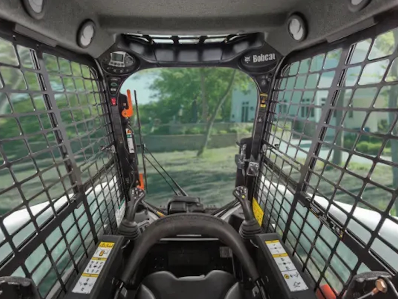 - Bobcat skid-steer loader and compact track loader cabs are designed for all-around visibility. As you grade next to a building or load the machine on a trailer, you’ll gain optimal sight lines for easier operation. View the bucket corners from your seat and easily see the cutting edge. Your tracks or tires are visible without raising the loader arms. A large top window gives you visibility while dumping material into a high-sided truck.