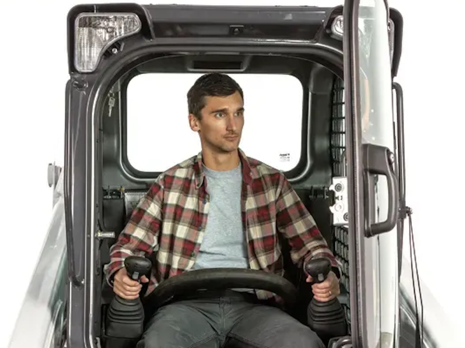 - Bobcat skid-steer loaders and compact track loaders are engineered with large swing-open doors, and a lowered door threshold, which provide ample headroom for exit and entry. Inside, even tall operators will be comfortable with plenty of headroom. Additionally, the swing-open door doesn't take up cab space and can be removed without tools.