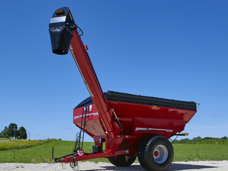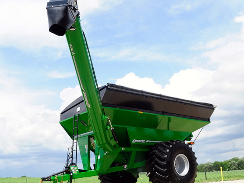 The Brent V-Series single auger grain carts bring operator visibility and convenience to new limits. The exclusive forward-reaching auger design provides industry-leading reach which maximizes visibility of the auger and downspout during unloading. This reduces operator fatigue and minimizes the risk of spilling to keep your harvest running smoothly. Choose from models V1500, V1300, V1100, V1000, V800 and V700 with capacities ranging from 1,500 to 750 bushels and unloading speeds up to 600 bushels per minute depending on model.