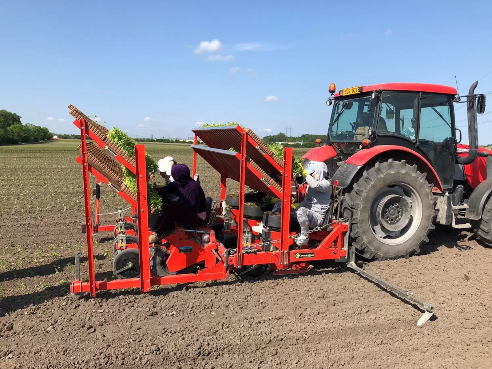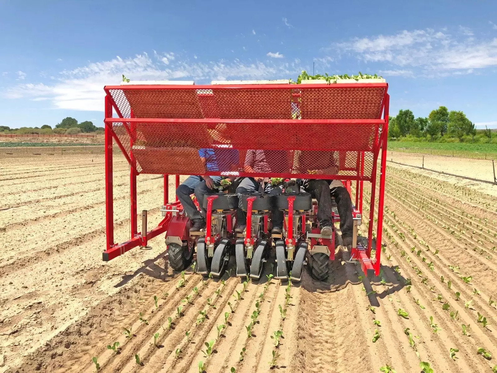 row-to-row spacing adjustable minimum 50 cm/20″, and 25 cm/10″ with double frame, parallelogram each planting unit; estimated production up to 4.000 plants/hour per operator. Ideal for salads, onion, leek and pepper.