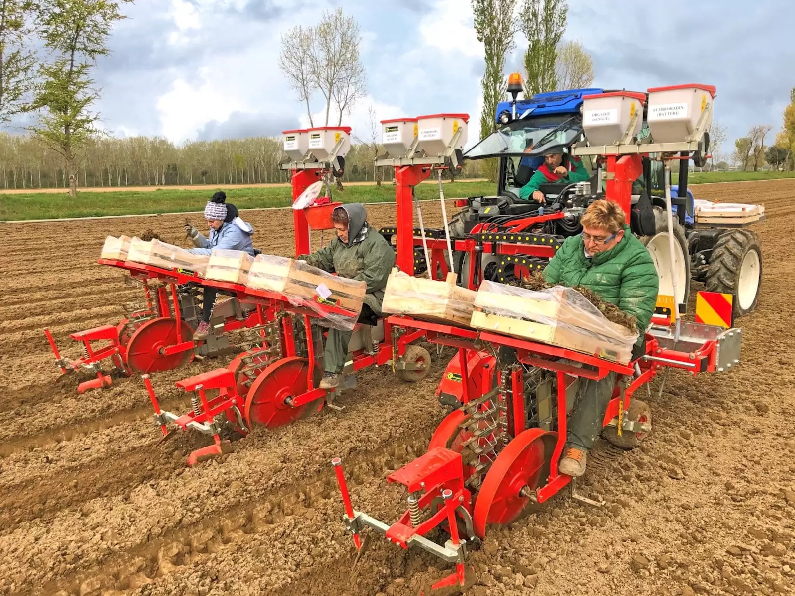 Versatile – The only one for bare roots and clod seedlings! Upgrade of the historic FOX transplanter, today each planting unit is equipped with a parallelogram for constant planting depth. Distributor with 5, 10, 15 or 20 fingers master chain, row-to-row spacing adjustable minimum 50 cm/20″. Estimated production up to 2.500 plants/hour per operator.Ideal for sweet potato, strawberries and lavender.