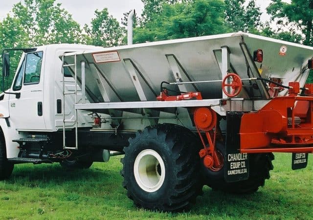 The Chandler FT Truck Mounted Fertilizer and Lime is designed to fit a wide range of truck chassis from Single Axle, Tandem Axle or a Semi -Float setup. With our field proven dished type spinners with a six blade design the Chandler FT Spreader has the most accurate and forgiving spreader pattern on the market. This has made the Chandler FT Spreader the go to spreader for farmers and the turf industry for over 45 years.