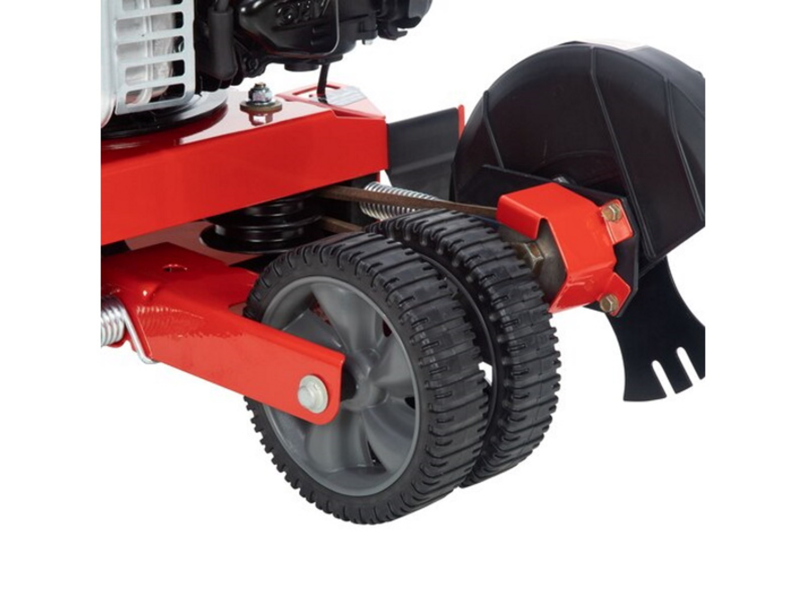 - 7-in FRONT/8-in REAR WHEELS: Transport wheels for controlCURB HOP WHEEL: Unique curb hop wheel for close cuts ADJUSTABLE DEPTH: Six edging depth positions with a max depth of 2.25-inGREATER CONTROL: Hand mounted throttle for easy operation