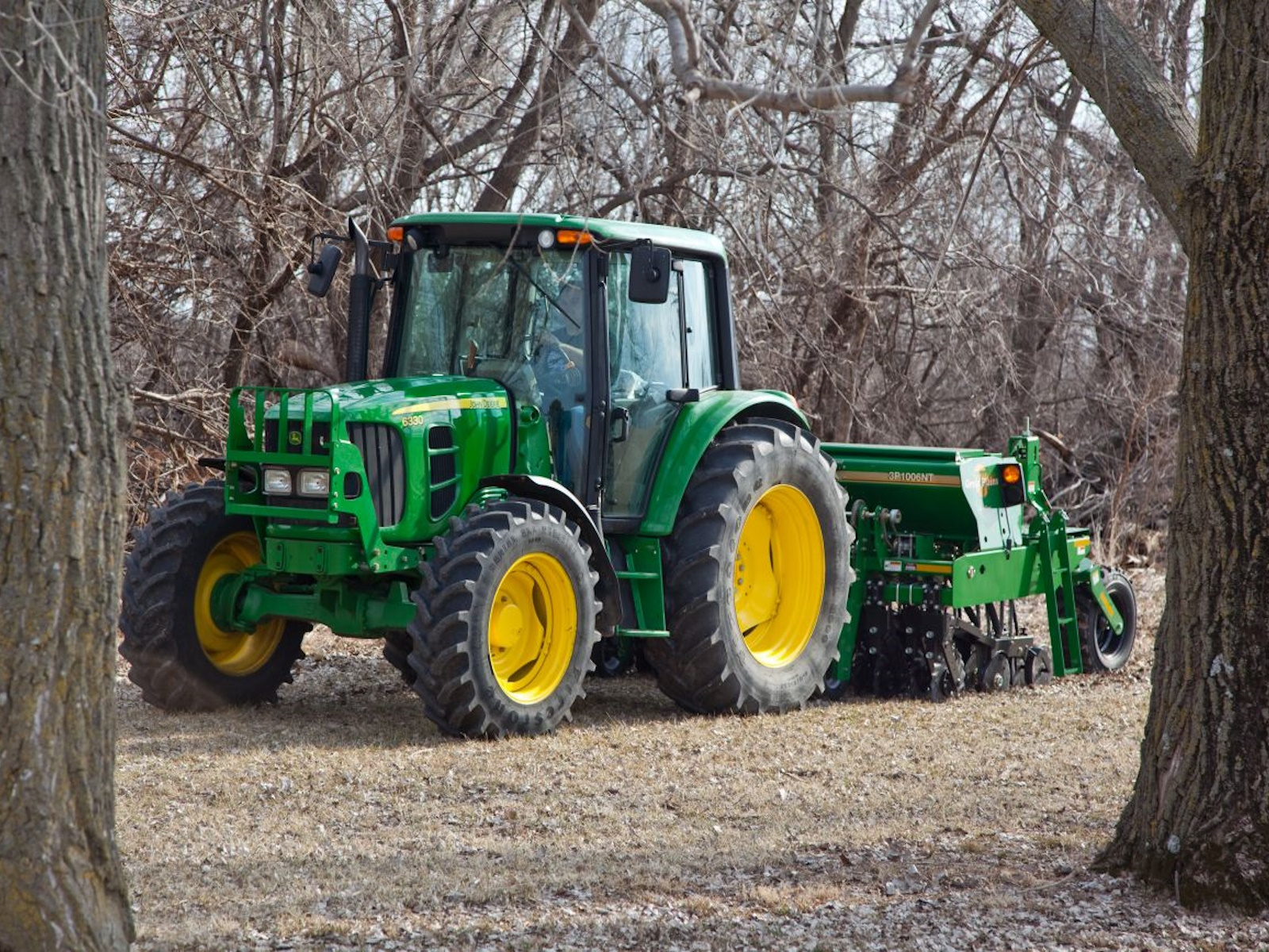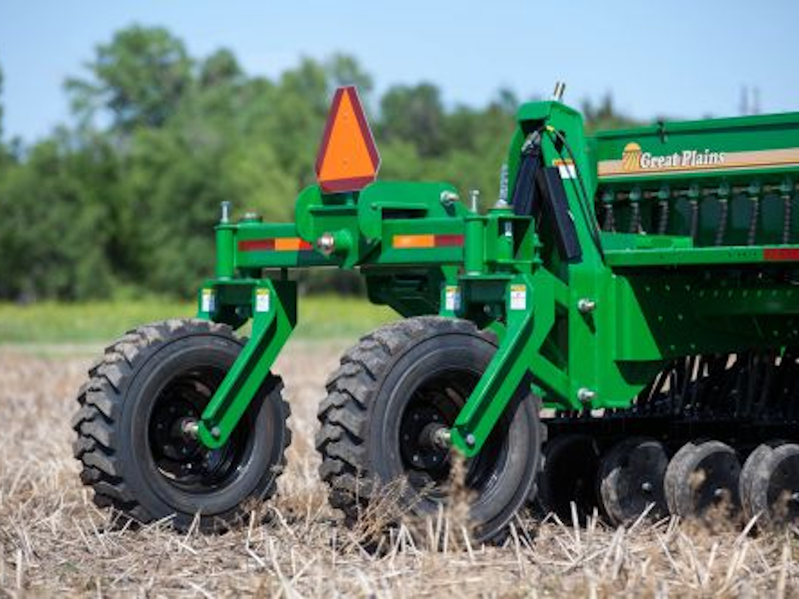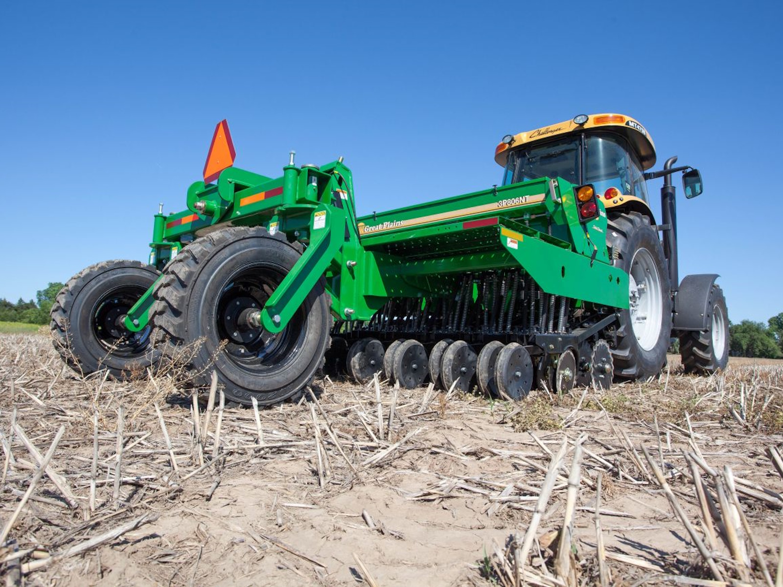 The Great Plains 3P806NT and 3P1006NT are 2-point mounted no-till drills with lift assist wheels to ensure safe operation and transport.