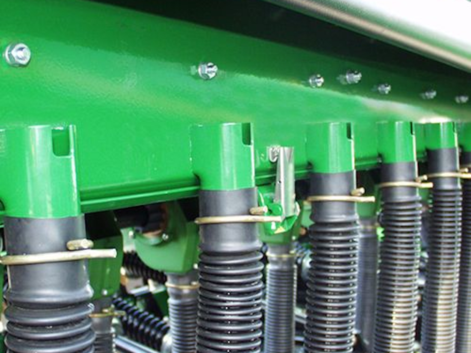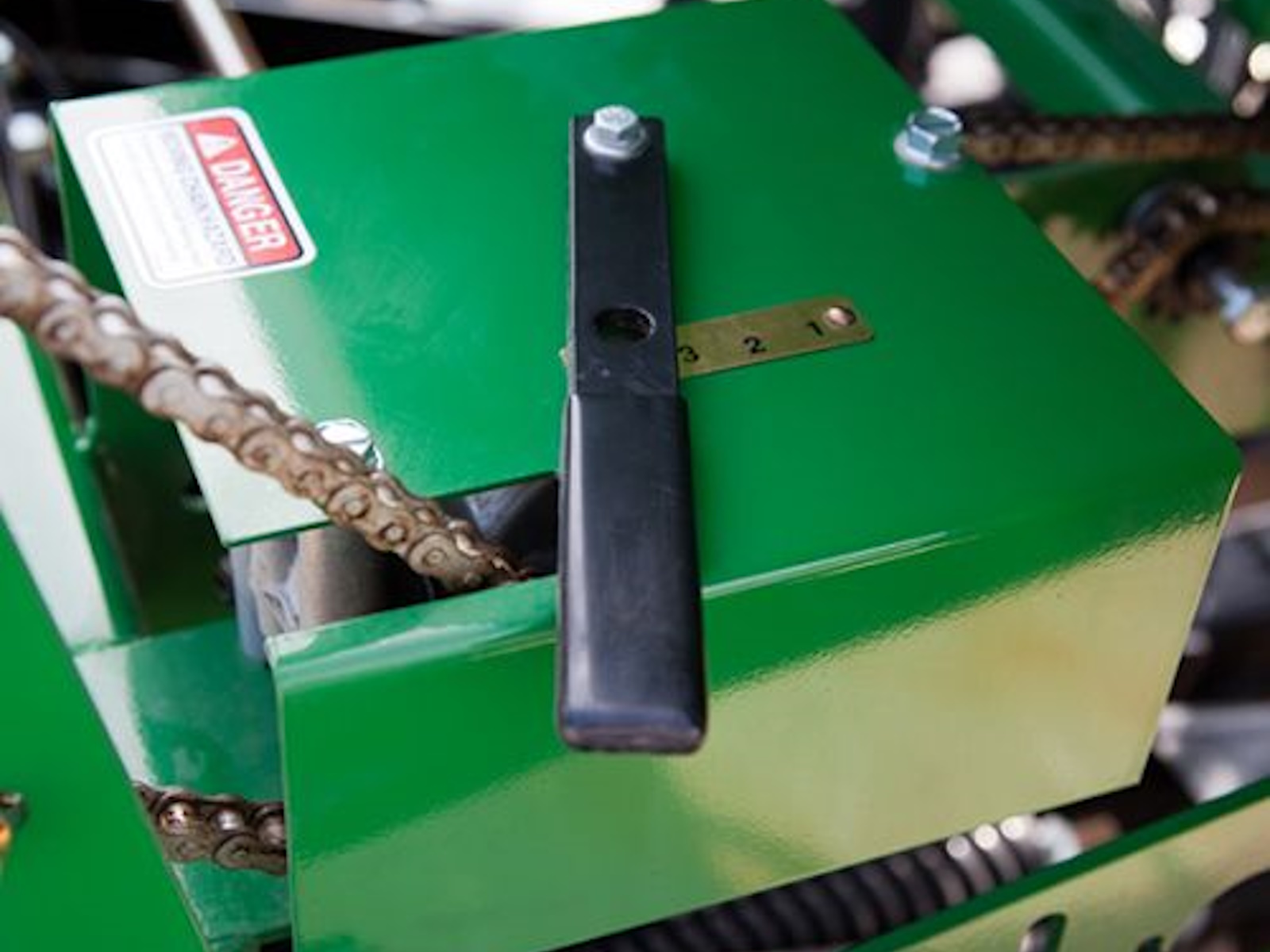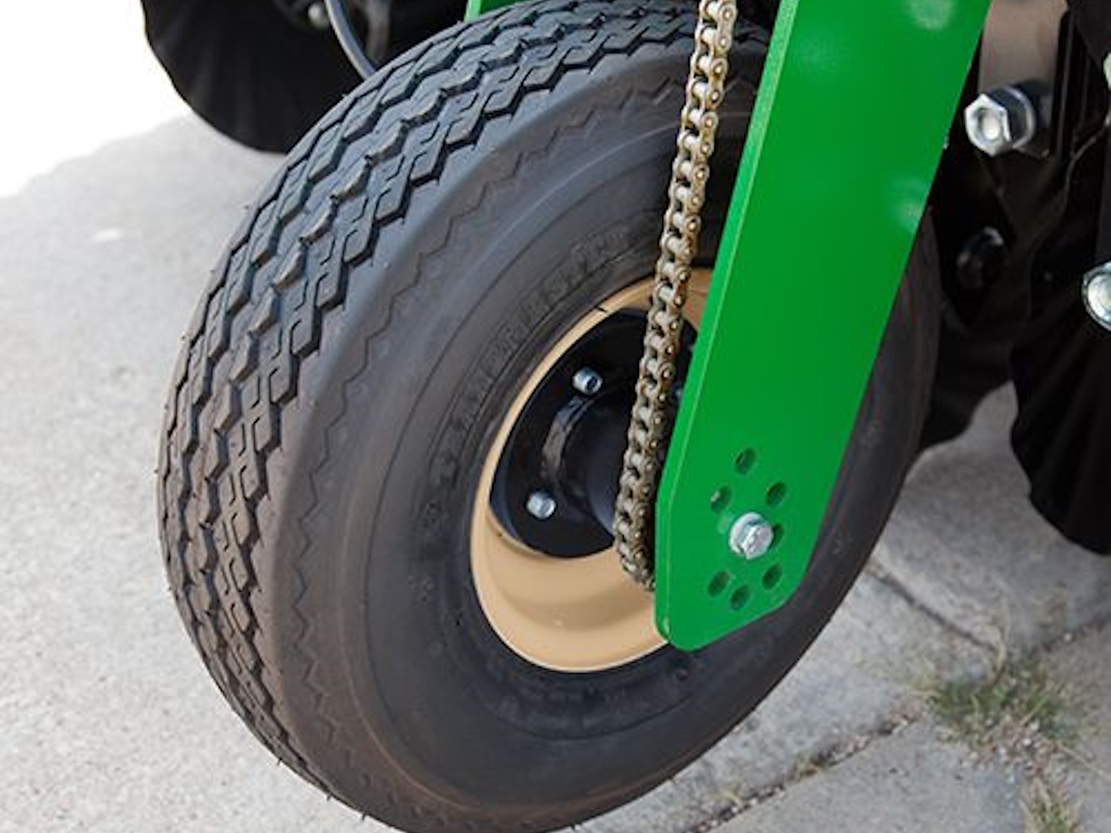 Featuring a fluted feed design, the main seed box’s seeding rate is set with the four-speed transmission and adjustable gate opening. The optional native grass box meters seed with the field proven picker wheel, and rates are adjusted by varying the speed of the drive. Lastly, the optional small seeds attachment is a smaller version of the fluted feed system, and seeding rates are set by changing the opening of the fluted feed. The ground-drive system automatically disengages when lifted, simplifying the unit and enhancing its reliability.