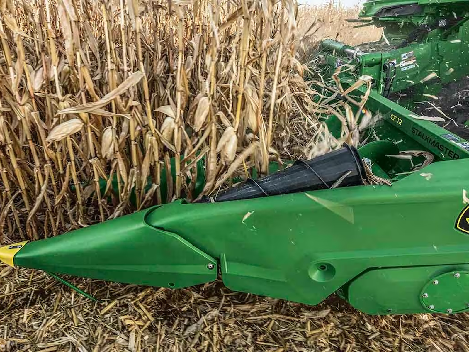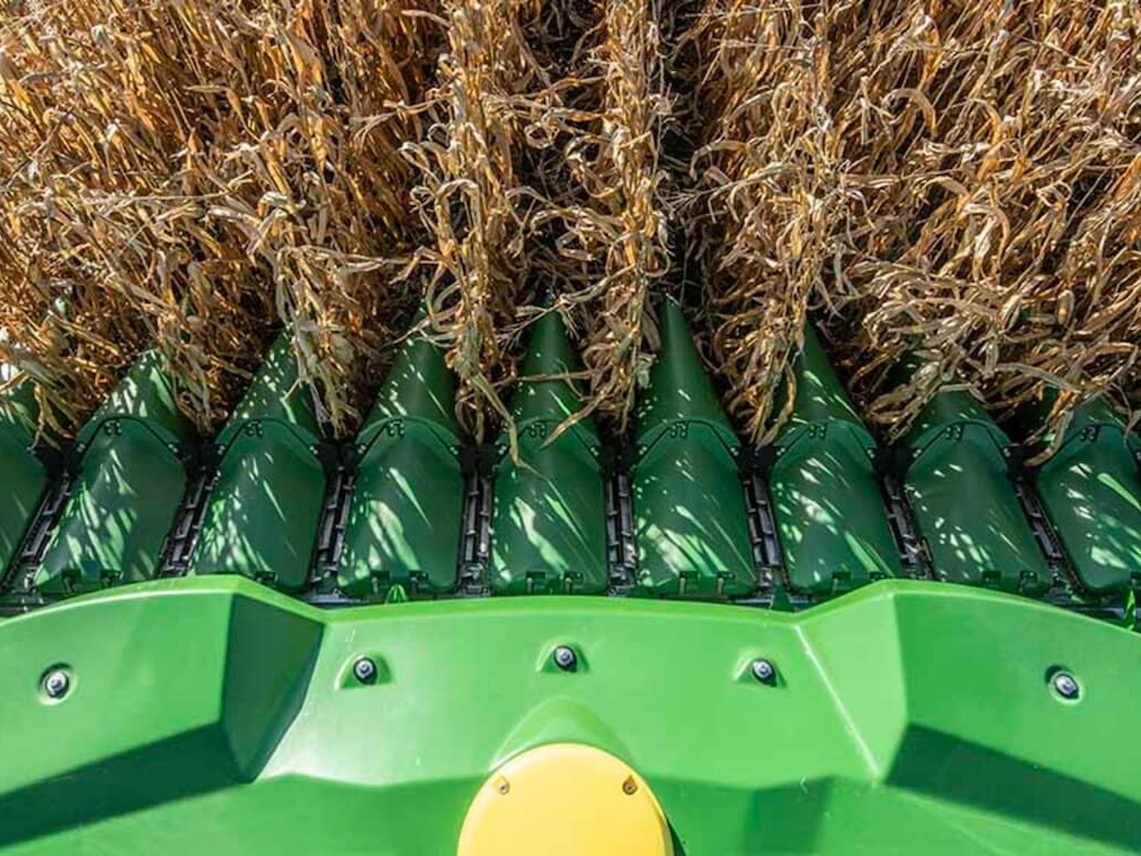 - Ready to harvest corn heads with factory installed Stalk Deflectors and Active End Fenders