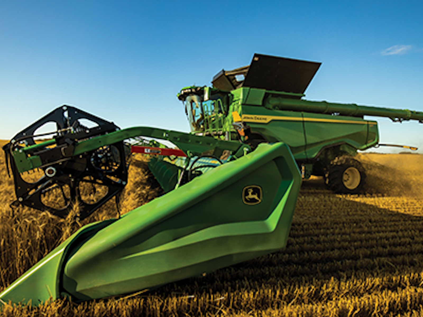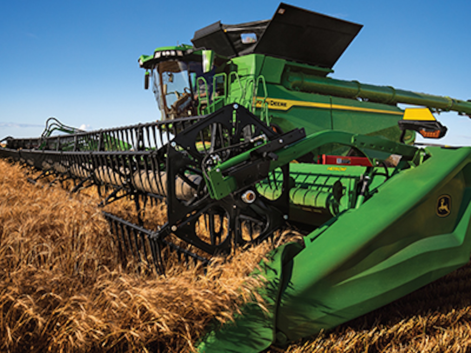 - Harvest in difficult crop conditions – Capture downed crop with the push of a button on the CommandARM™ console to automatically raise the gauge wheels and extend your reel out and down. Harvest the most challenging lodged crop confidently with a 24 percent increase in reel torque (compared to the 700FD).