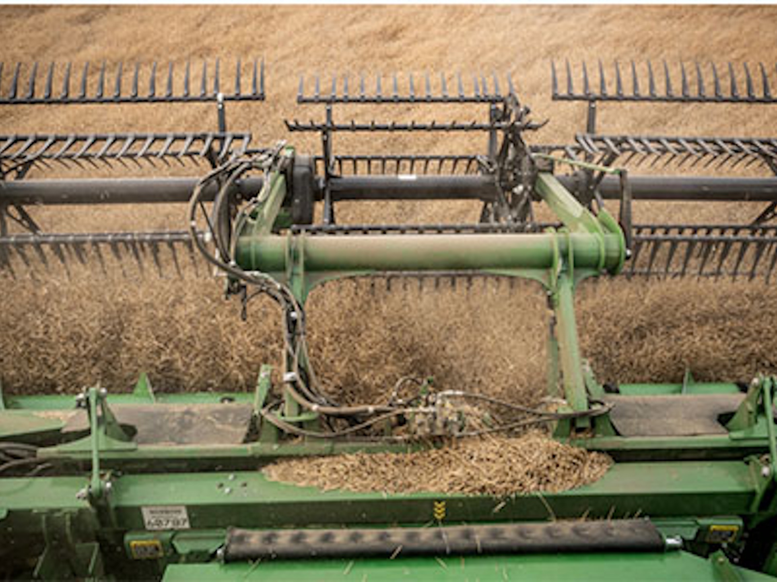 - Keep a clean cutterbar no matter the field or crop – A more consistent distance between the reel fingers and cutterbar (compared to the MacDon FD145) ensures the crop is cleanly swept across the cutterbar and evenly fed into the combine throughout the full wing range.