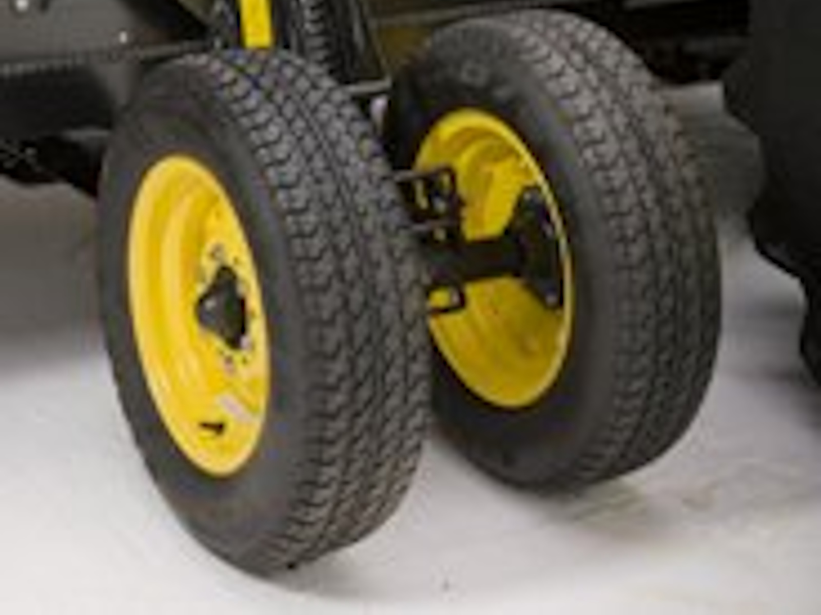 - Dual front dolly wheel tires and two gauge wheel tires carry the weight of transport