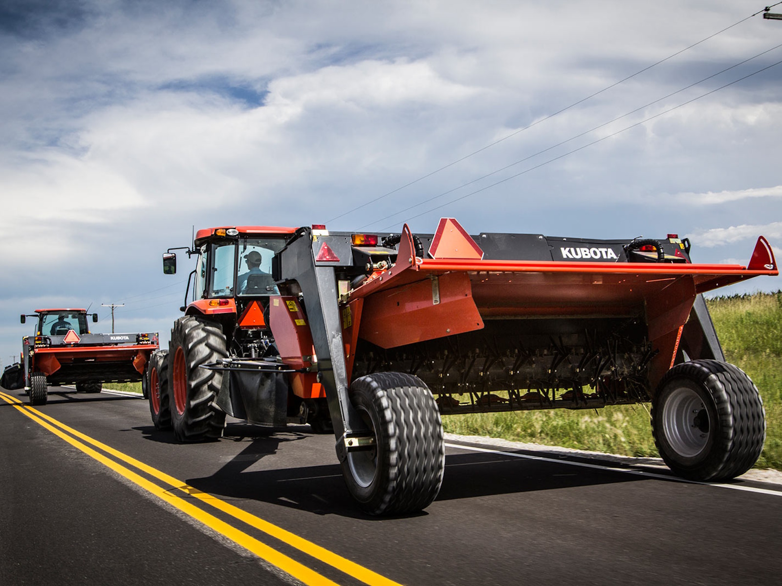 When you’re looking for clean cutting action and dominant conditioning, you can’t go wrong with the Kubota DMC8032T. This disc mower conditioner features a working width of 10’ 6” and thanks to its centrifugal force and excellent tine protection, the DMC8032T is designed to last you for years. Independent active suspension ensures you’re getting the best cut available, no matter the terrain. With simplified transportation, you’re going to be getting a lot of value out of the DMC8032T.