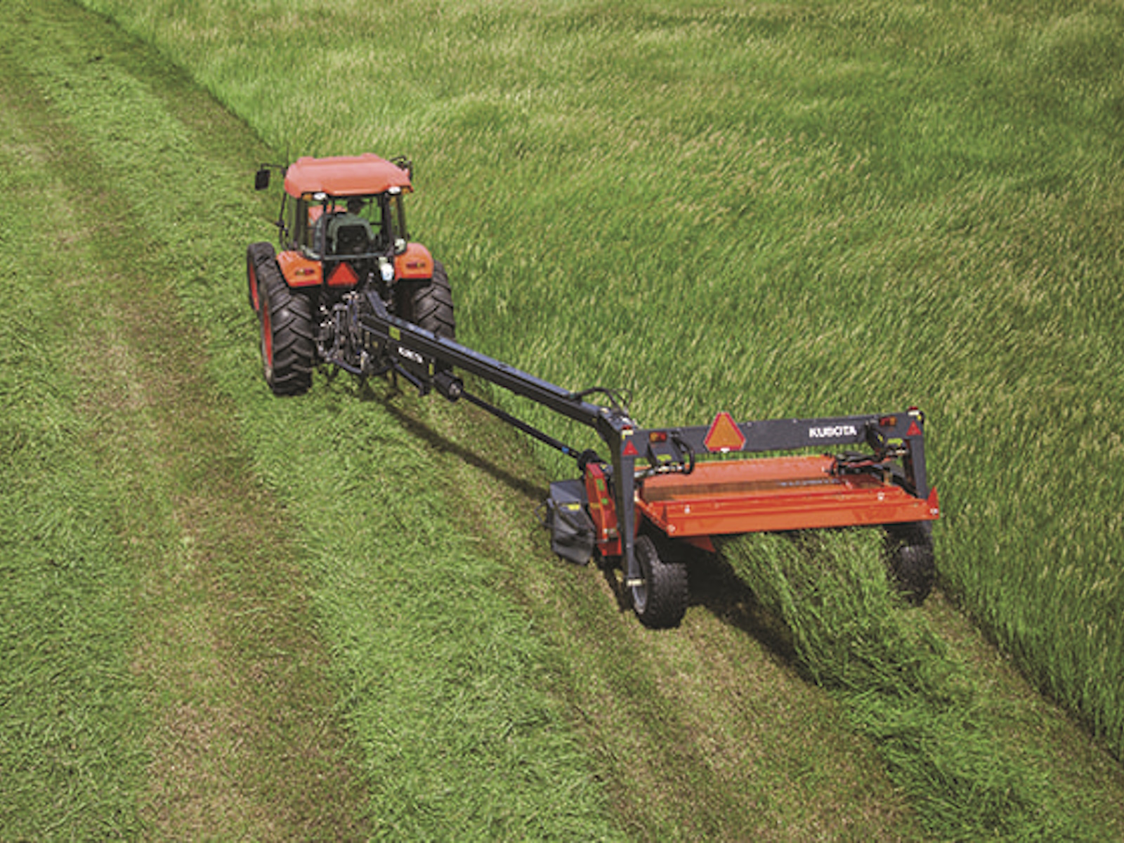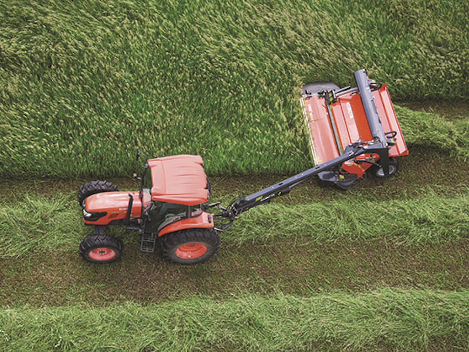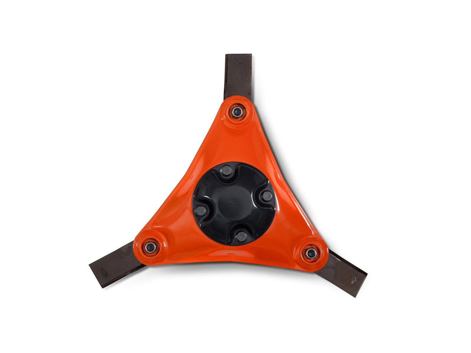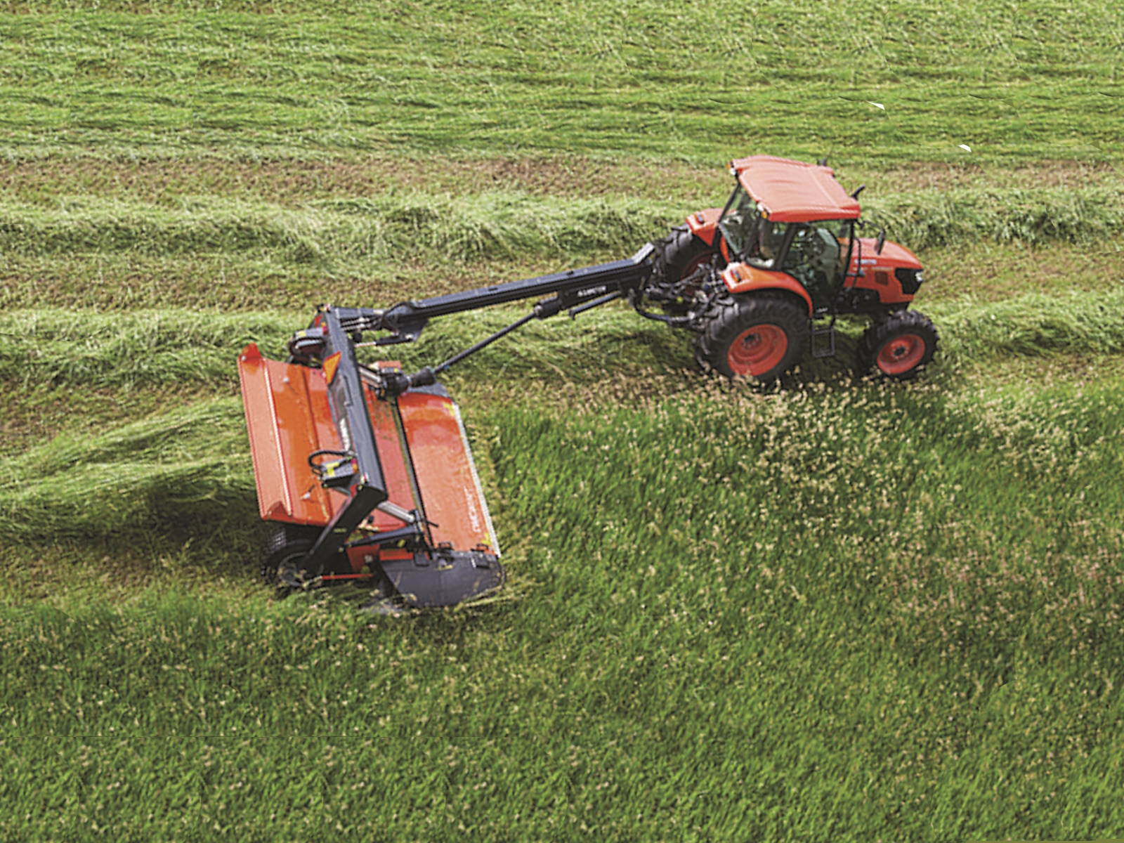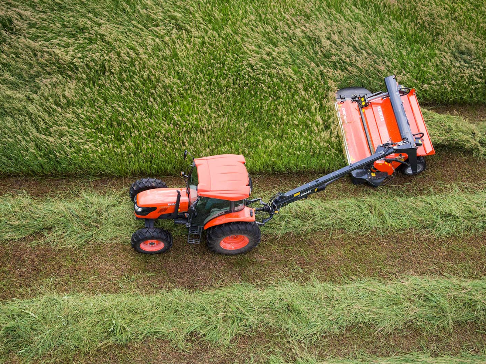 • With three blades per disc, Kubota mowers are constantly cutting. This means a third less load per blade, an even load on the drive and smoother power usage – which produces an even, cleanly cut stubble. Each steel blade is precisely angled to immediately discharge the cut crop upwards by both air flow and mechanical action.