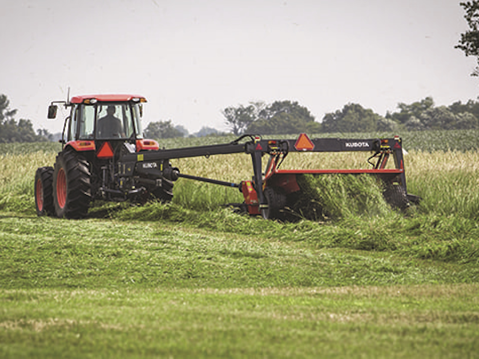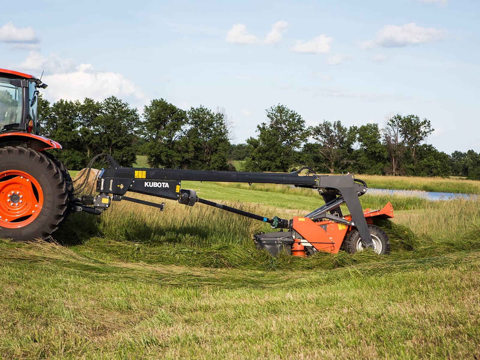 • Utilizing centrifugal force is what makes the Kubota SemiSwing conditioner stand out among other conditioning systems. It offers an aggressive conditioning effect with excellent tine protection and virtually no wear and tear. The conditioner plate can be set in 3 positions, according to the required conditioning effect. Depending on crop conditions and the amount of crop you are cutting, the plate is easily adjusted to achieve the desired conditioning.