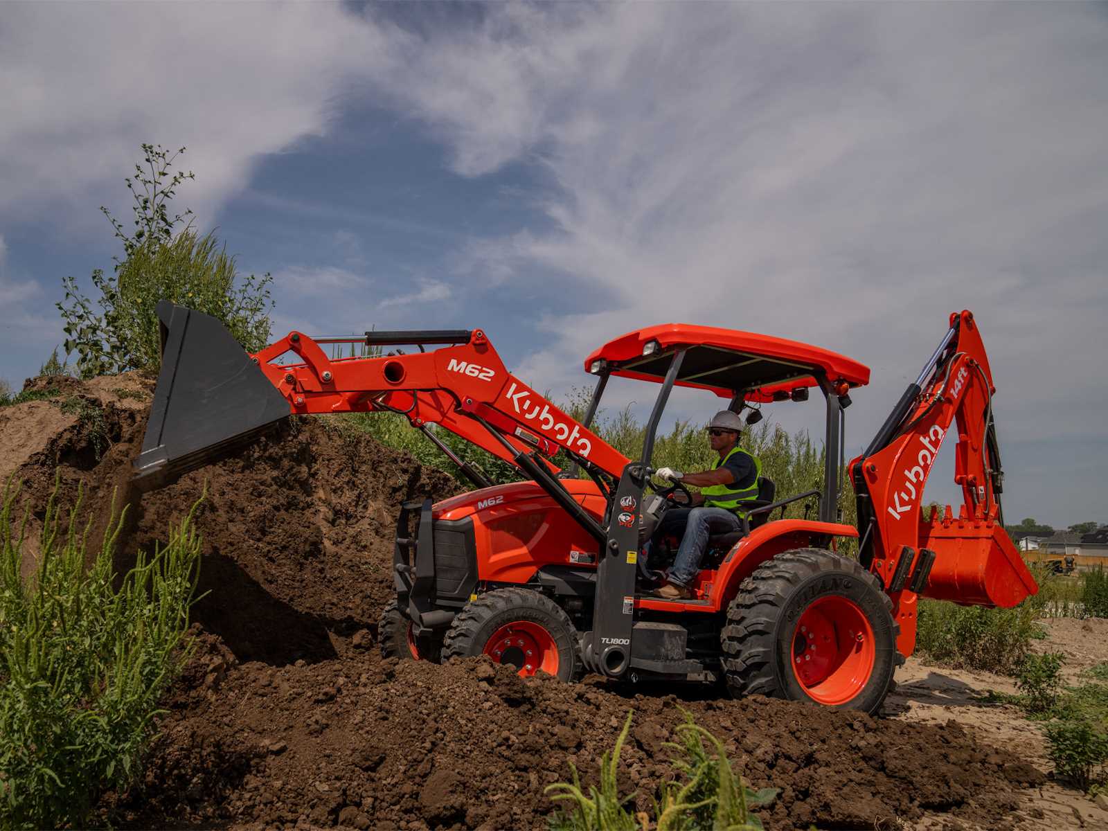 Engineered to save you time and effort on every job. Packed full of upgraded features, the M62 comes equipped with a 63 HP Kubota Tier 4 Final diesel engine, Kubota front loader with 3,960 lbs. of lift capacity and powerful Kubota backhoe with 169.8 in. max digging depth. It's one powerful combination ideal for a wide range of landscaping, construction and contracting jobs.