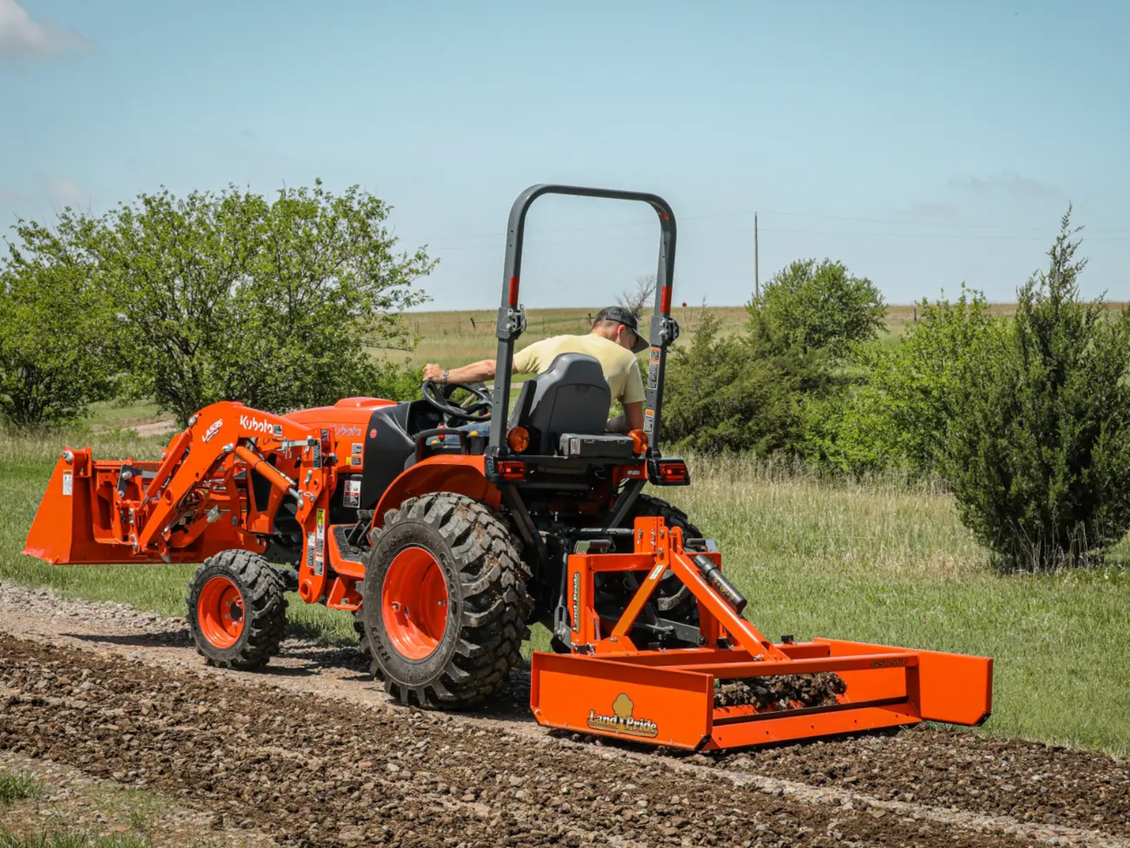 Land Pride GS05 Series Grading Scrapers have uses and applications in landscaping and hobby farms and are a low cost alternative for road grading applications. They do not require the additional horsepower or tending of tractor 3-point lift controls that a box scraper normally requires. Simply setting a properly adjusted GS05 Series Grading Scraper on the ground and driving forward enables the operator to grade off high spots and fill in ruts and low spots on unimproved roads and lanes with little or no manipulation of the tractor's 3-point hitch controls. Unlike a rear blade, they require no adjustment of blade angling or offset positions.