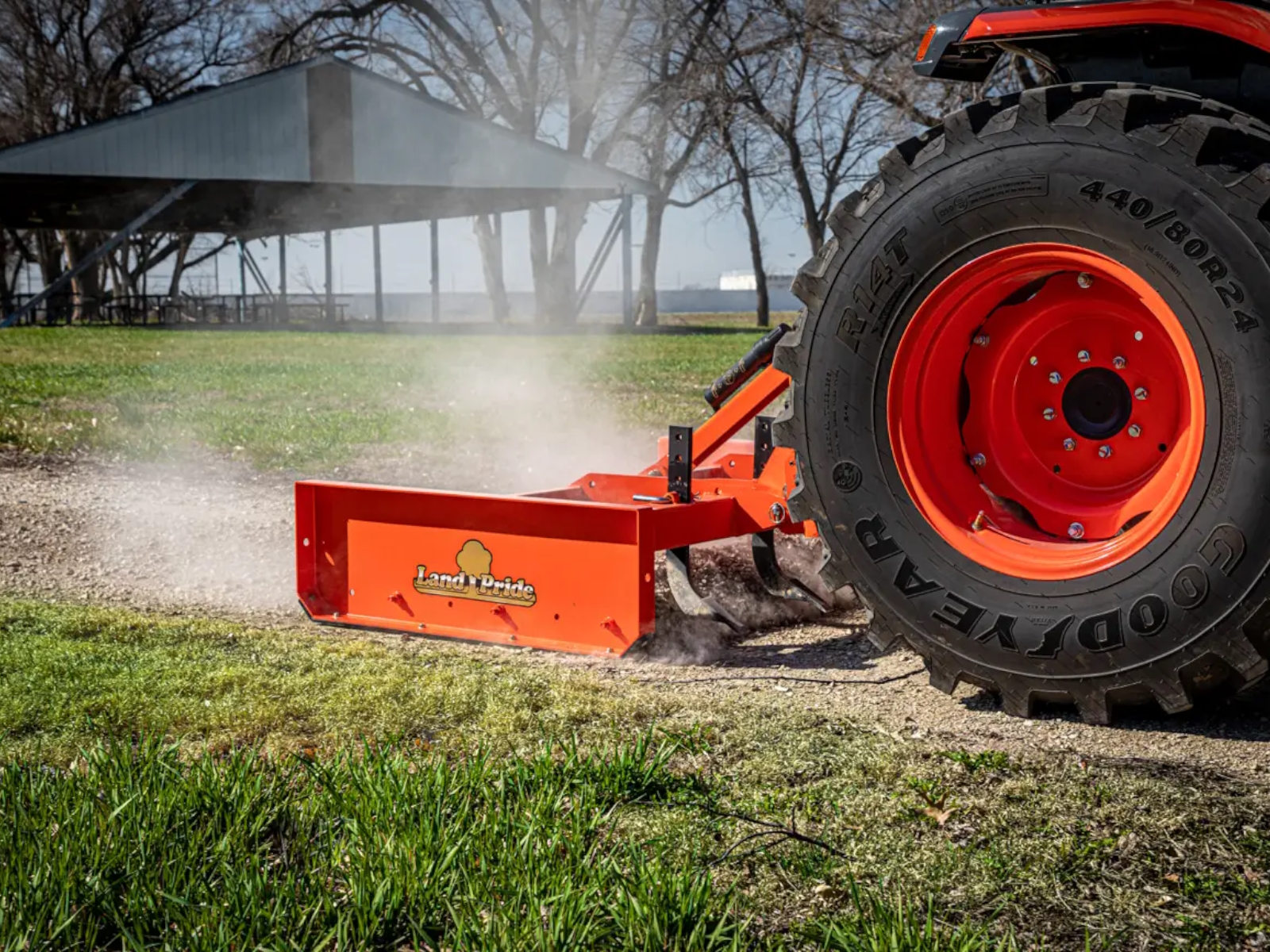 Land Pride's GS15 Series Grading Scrapers have uses in applications such as landscaping, small farms and ranches, hunting camps, small acreages, and sod farms. The GS15 is extra user-friendly and a low cost alternative for road grading applications. Unlike a box scraper, they are not designed to transfer large volumes of dirt from one location to another and as a result do not require the additional horsepower that a box scraper normally requires. Nor does it require the tending of tractor 3-point lift controls to maintain grade that a box scraper might require.