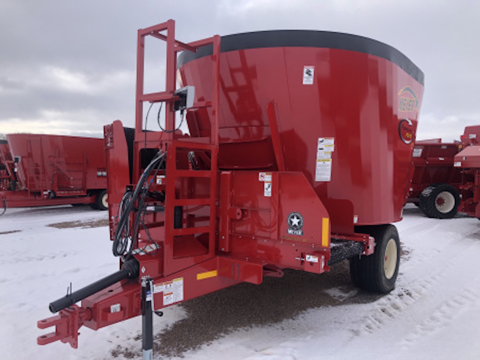 - Hay Retention Ring: Meyer offers a optional hay retention package. This package is useful when high volumes of long stem material are in your batch. Itkeeps hay from boiling over the tank and maintains good contact between the bale and auger knives.