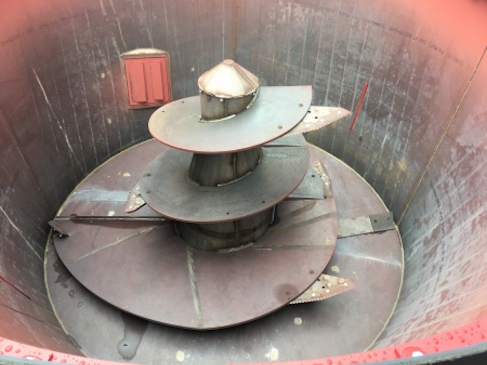 - Side Door Option #2: Hydraulic Folding Slide Tray: This Hydraulic Folding Slide Tray with magnets operates at a steep angle for complete discharge! (twin screw mixer in photo)