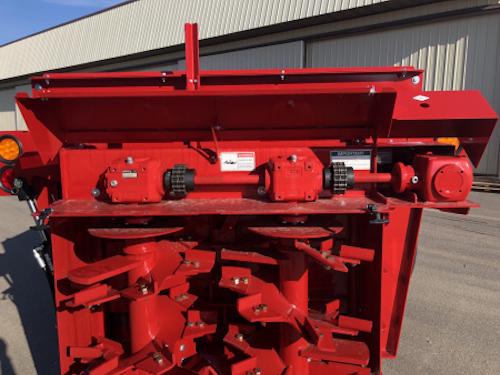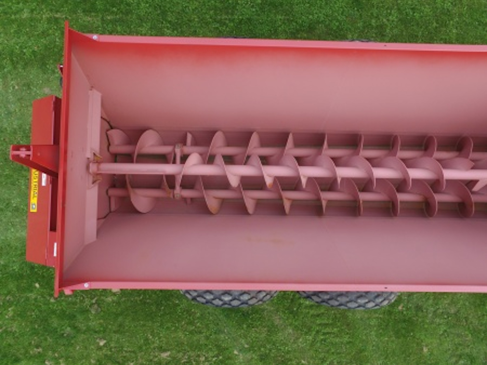 - 3 auger system, only one of its kind! Lower 20" augers feed the door while the upper 13" auger levels the load forward and eliminates bridging.