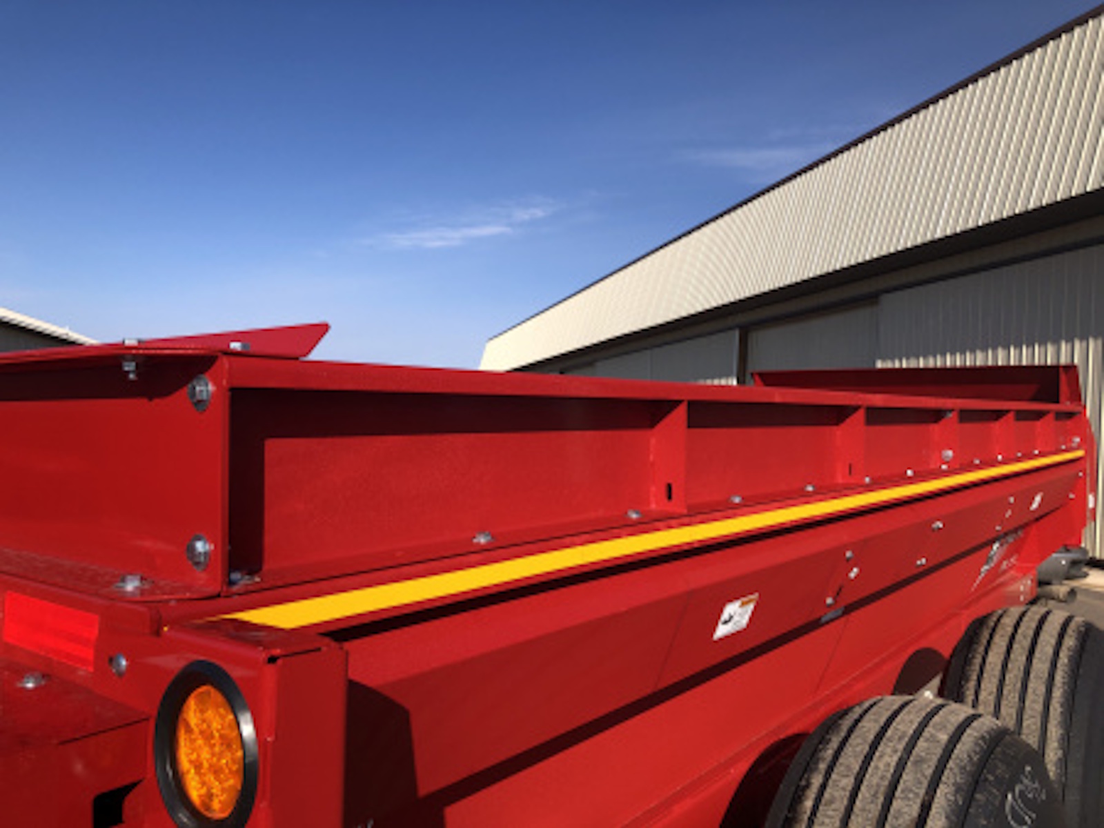 - LED turn signal lighting standard / Redesigned tailgate & lift mechanism: The door opening of the new Crossfire is WIDER and TALLER allow for faster unloader in solid manure. The tailgate is reinforced and the gate tracks are redesigned and poly-lined for better long term performance, even in cold weather. The tailgate pivot arm is stronger and has a dual hinge point to avoid sticking & wedging.