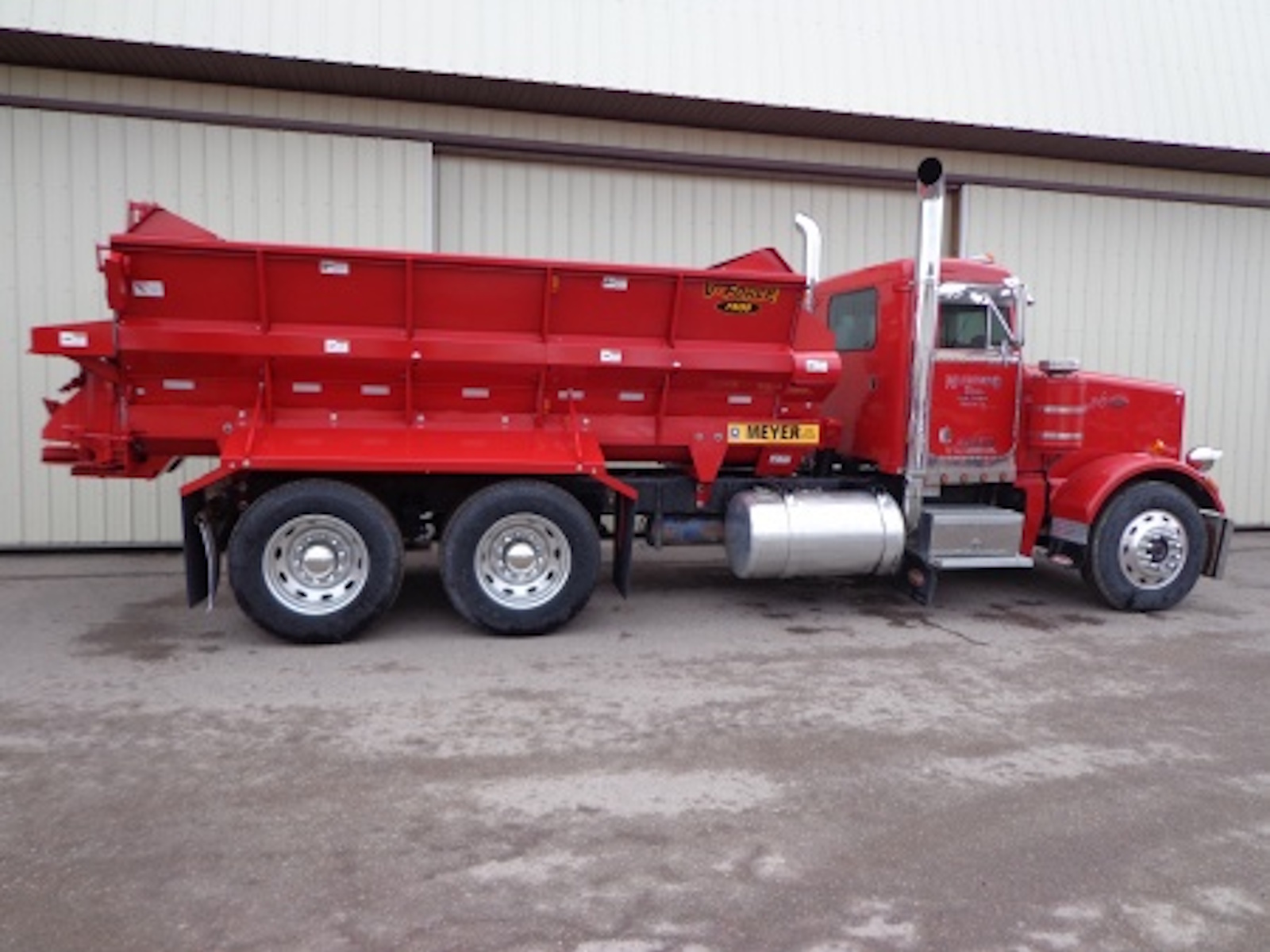 - Thanks to the dual lower auger arrangement, the Meyer spreader body is wide down low. This means we can maintain a lower load height with maximum capacity! The other advantage is the near elimination of bridging which is common in side delivery spreaders.