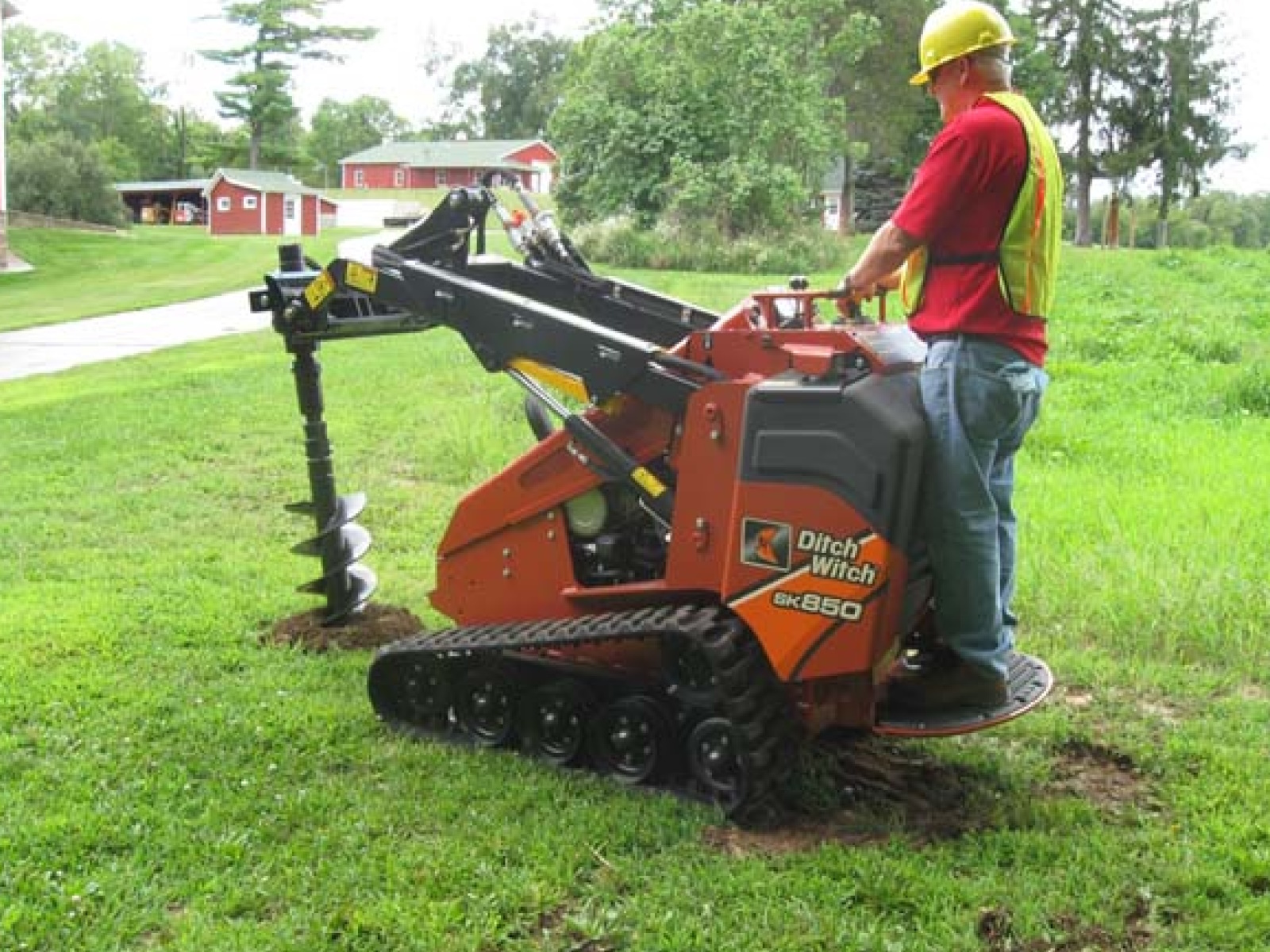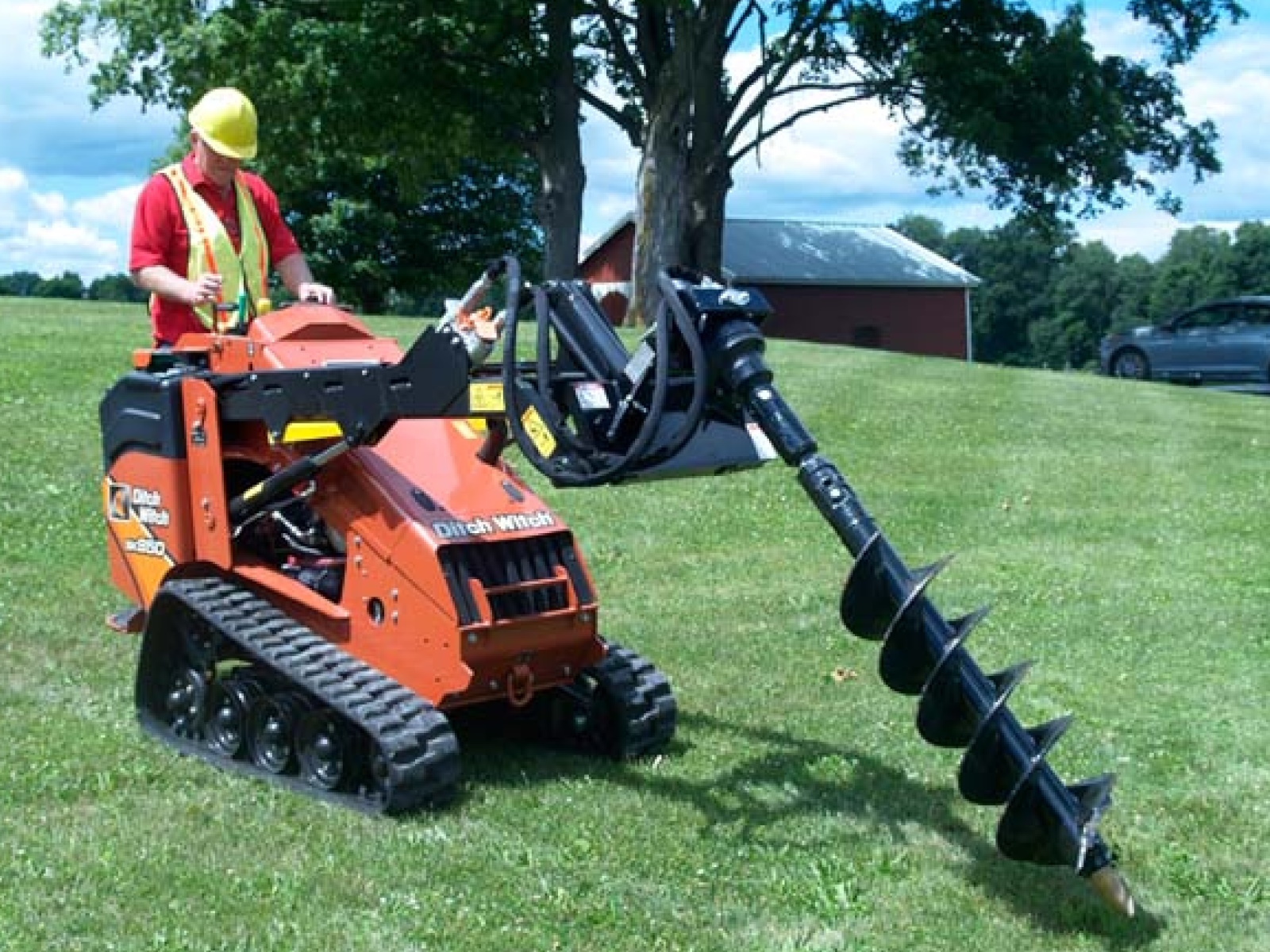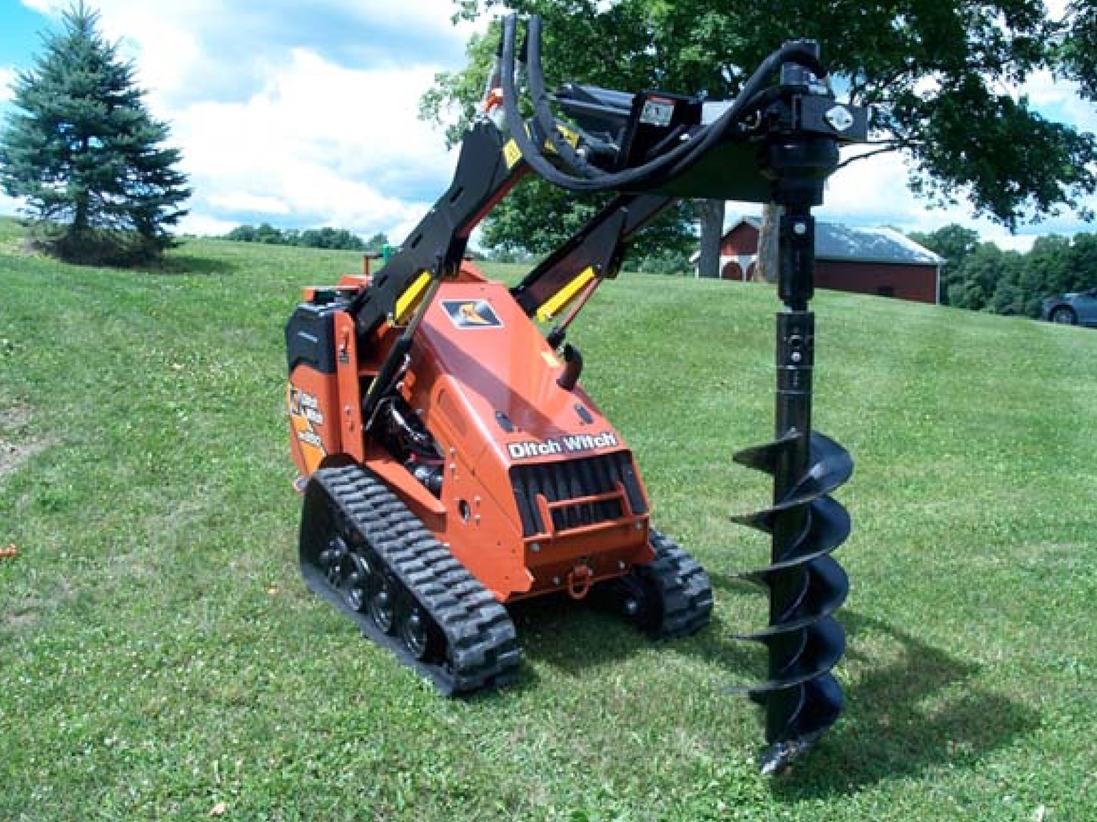 Designed for the CTC (Compact Tool Carriers) mini skid steers, to bore holes from 4- to 36-inch diameters. Great for landscapers and contractors, allowing them to get into tight areas to get their holes bored.