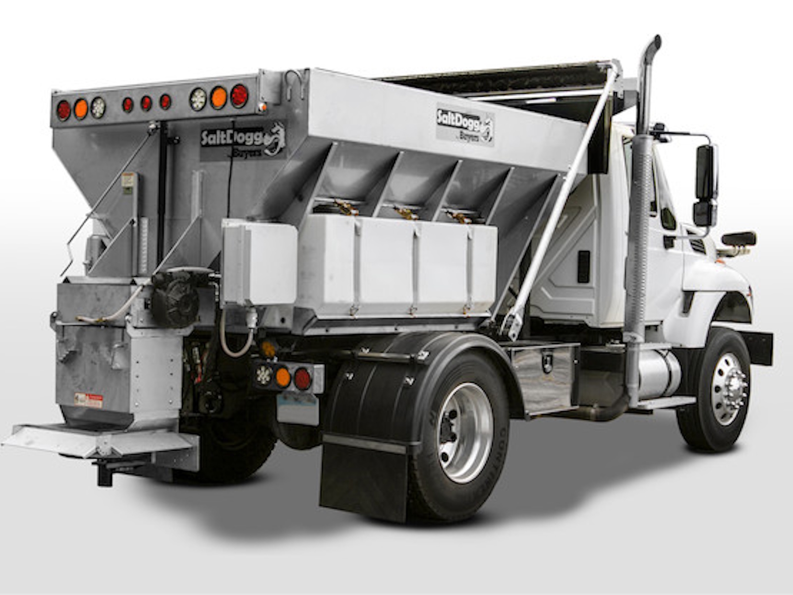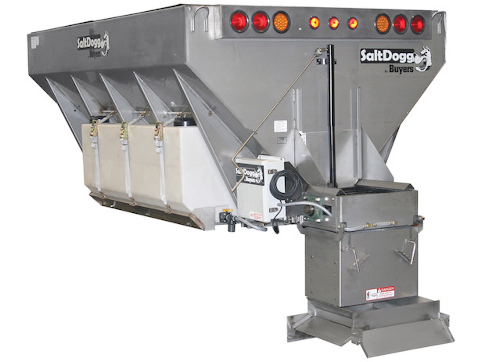 Buyers Products SaltDogg Municipal Hydraulic Conveyor Chain Spreader gives municipalities and large contractors a high-volume, heavy duty spreader ready for use with a truck's existing central hydraulic system. The 108 in., 120 in., 144 in., or 168 in. hoppers are designed for 96 in. wide dump bodies and flatbeds with a minimum 26,000 lb GVW (gross vehicle weight) chassis.