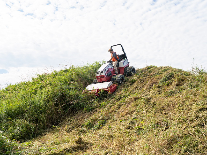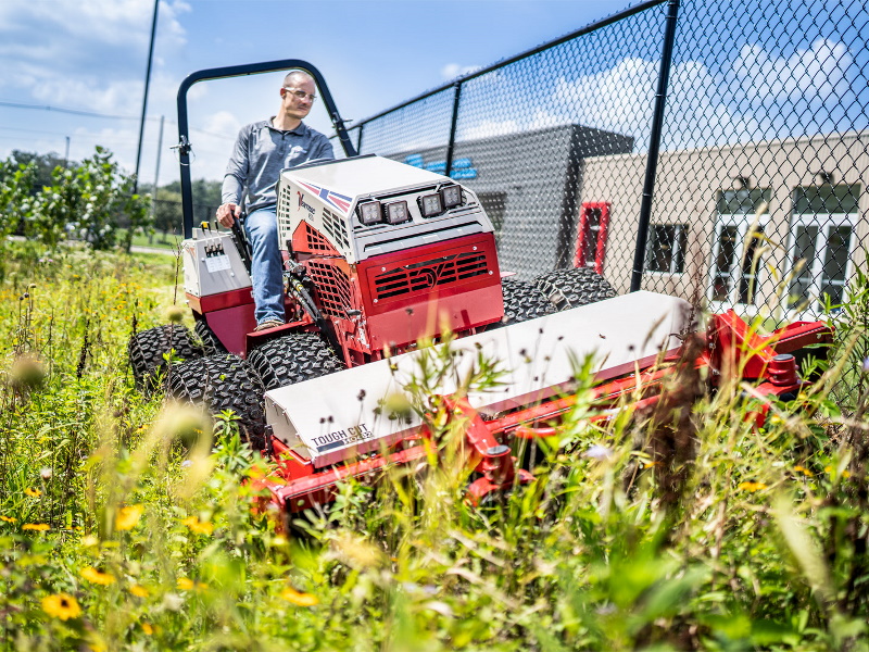 The HQ682 Tough Cut Mower is the mower of choice for mowing high grass, thick weeds, and heavy brush. A large baffled front opening assists in directing materials into the deck and helps hinder debris from escaping. Three heavy-duty blades counter rotate to cut and deposit waste evenly without windrowing. Capable of tackling saplings and large thorn bushes, the Tough Cut makes short work out of overgrown thickets.