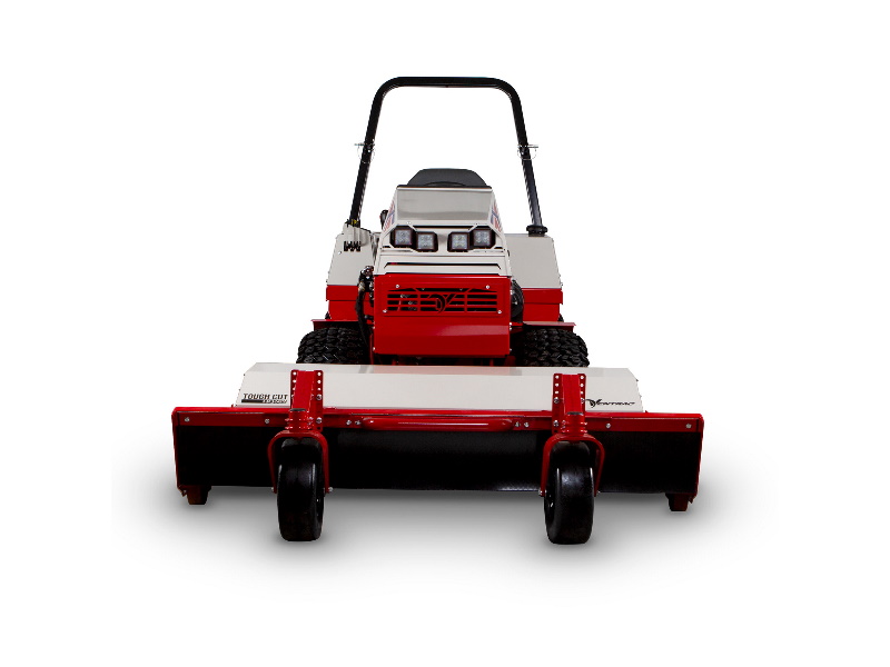 The Tough Cut has three adjustable cutting heights: 3, 3 5/8, and 4¼ inches. Easy servicing of belts and pulleys is provided by the hinged and removable cover. The manual tilt-up deck provides access under the deck.