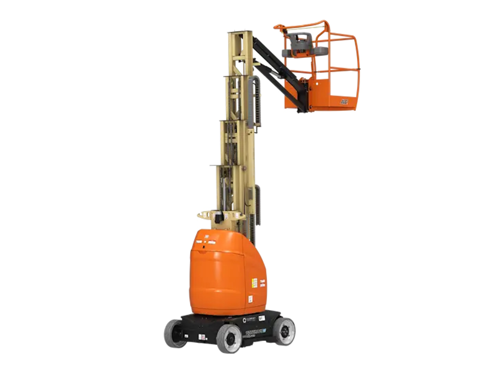The JLG 26E, with a 25% gradeability for outside work, offers compact up-and-over lift capability that fits anywhere. The vertical telescopic mast with jib lets you reach in tighter spaces than an articulating boom.