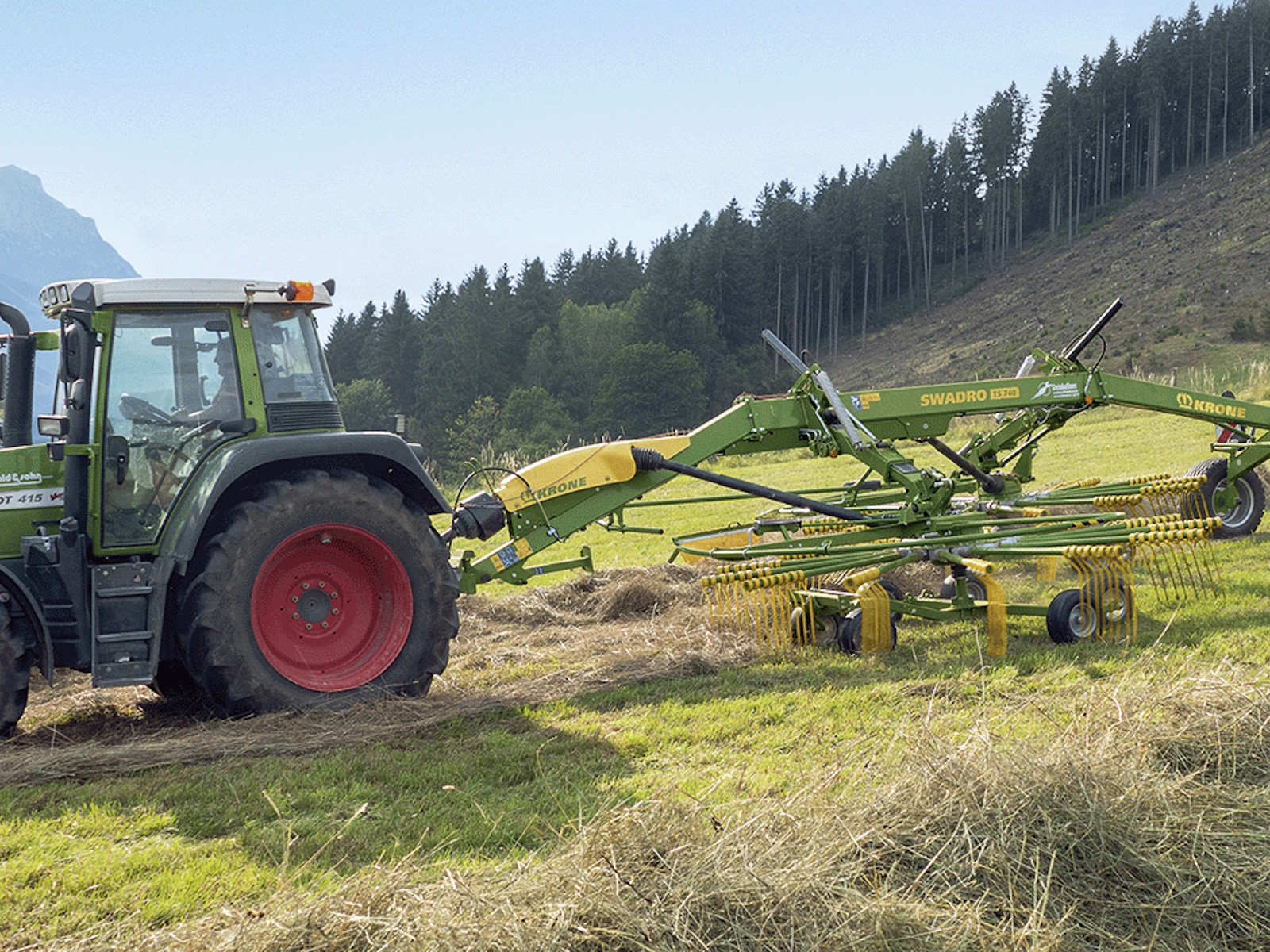 The KRONE Swadro S and TS line-up of rotary rakes offers the largest choice of side delivery rakes in the market. Our programme comprises an unmatched number of models and variants – from the single-rotor rakes for non-contiguous fields all the way up to the Swadro TS 970, the world's most unique three-rotor rake for maximum productivity and harvester capacities.