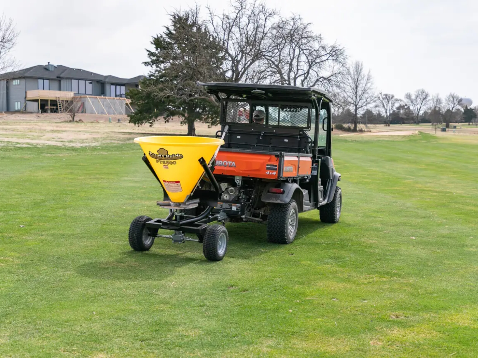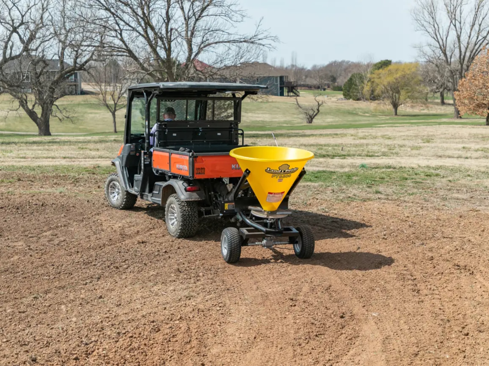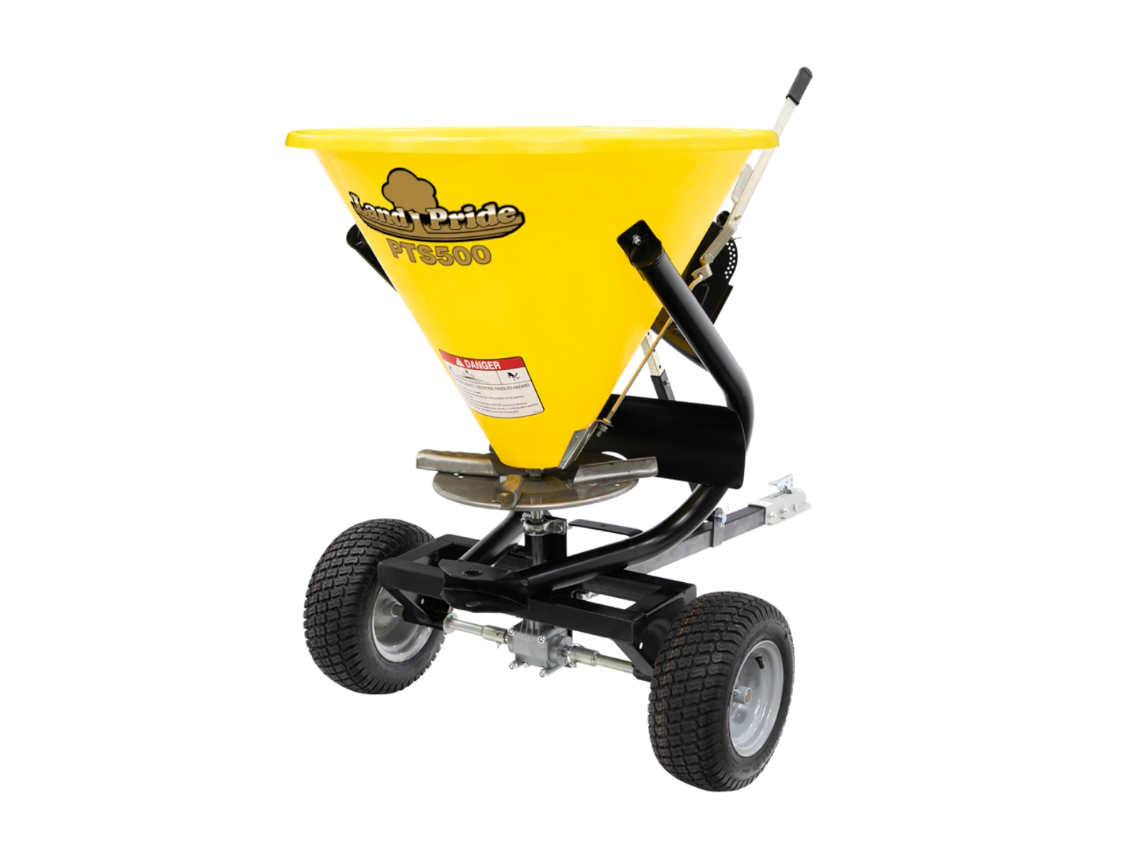 Land Pride's PTS Series spin type Broadcast Spreaders offer a pull type hitch and are ground wheel driven with simple gearbox disengagement for transport. The spreaders are capable of spreading seed, sand, salt, top dressings, prilled/granular fertilizer, and many other types of granular materials. The spread rate capability and range of hopper capacities make the PTS Series Spreaders well suited for applications on farms, golf courses, food plots, park systems, athletic fields, and campuses. These units are great for control of snow and ice in commercial or small municipal applications.