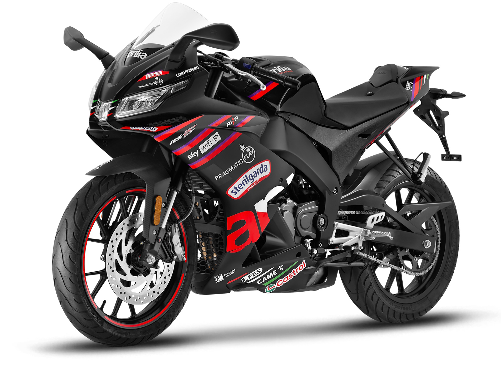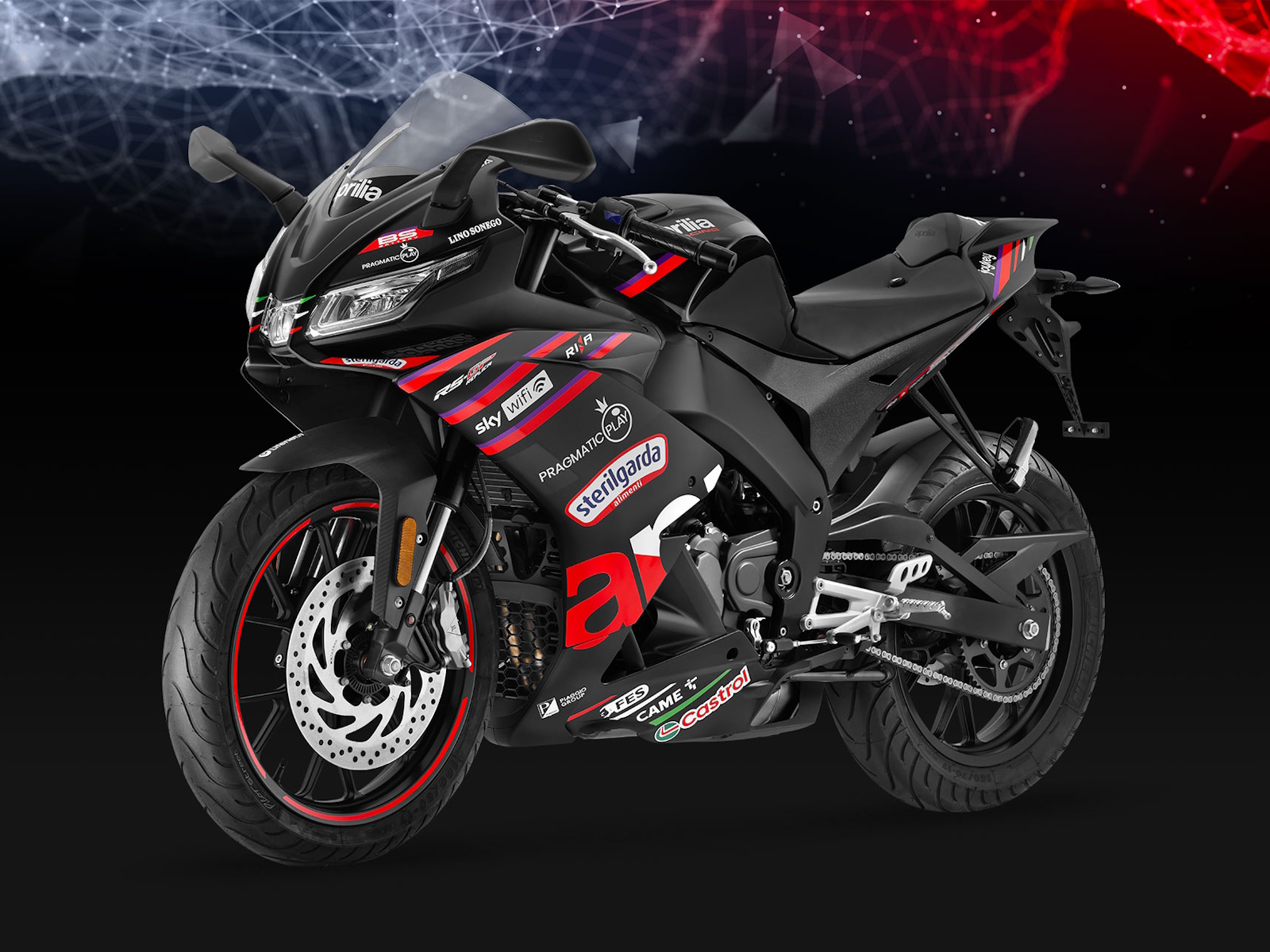 The Aprilia RS 125 GP Replica combines engineering prowess with an authentic sporting character. At its heart is a Euro 5+ four-stroke, four-valve liquid-cooled single-cylinder engine capable of delivering genuine thrills whenever you step on the gas. Quick Shift, which comes as standard, enables ultra-fast gear changes, while Traction Control (with the option to disactivate it) and Bosch dual-channel ABS with an anti-rollover function work to offer maximum control and safety.