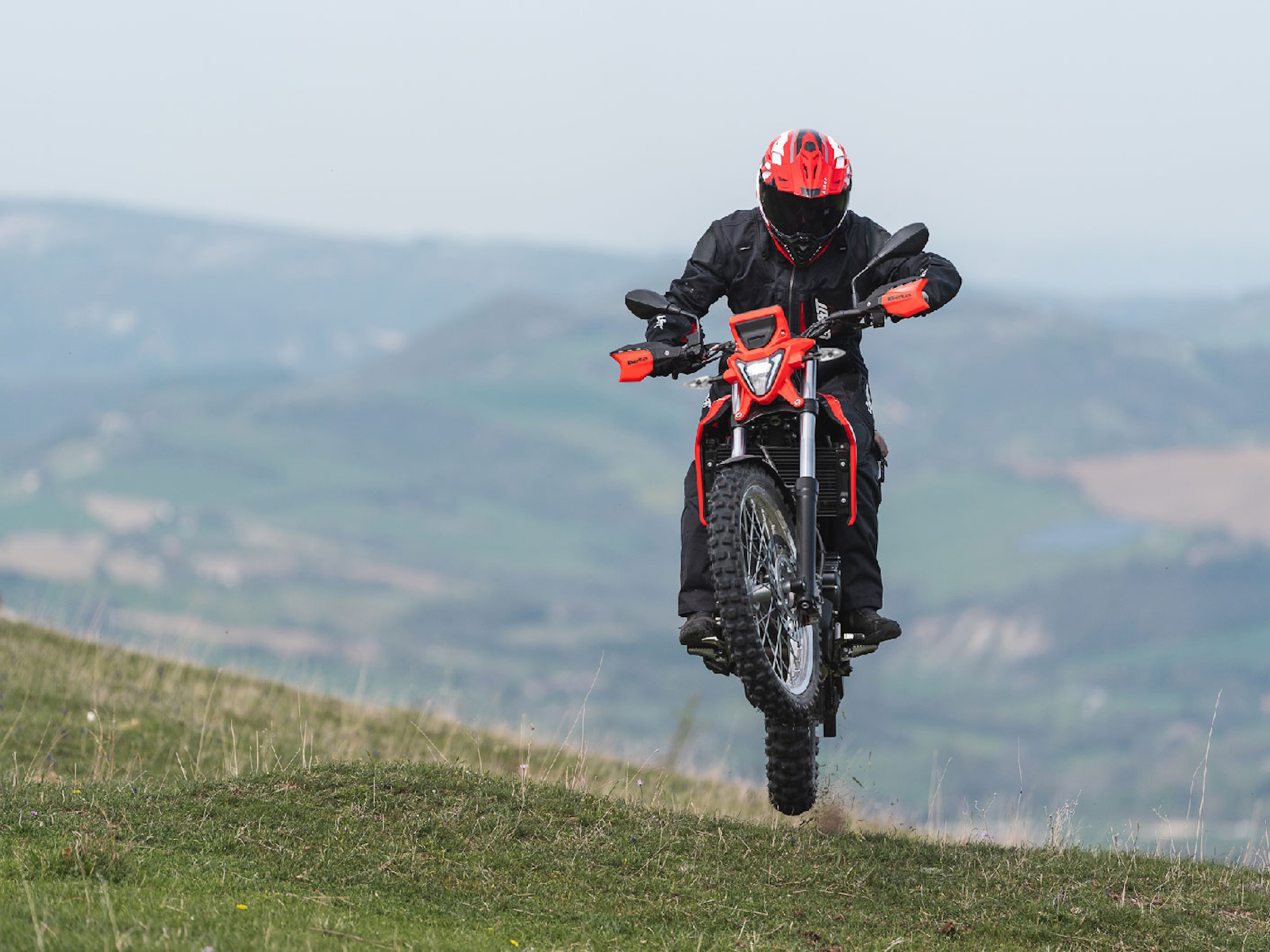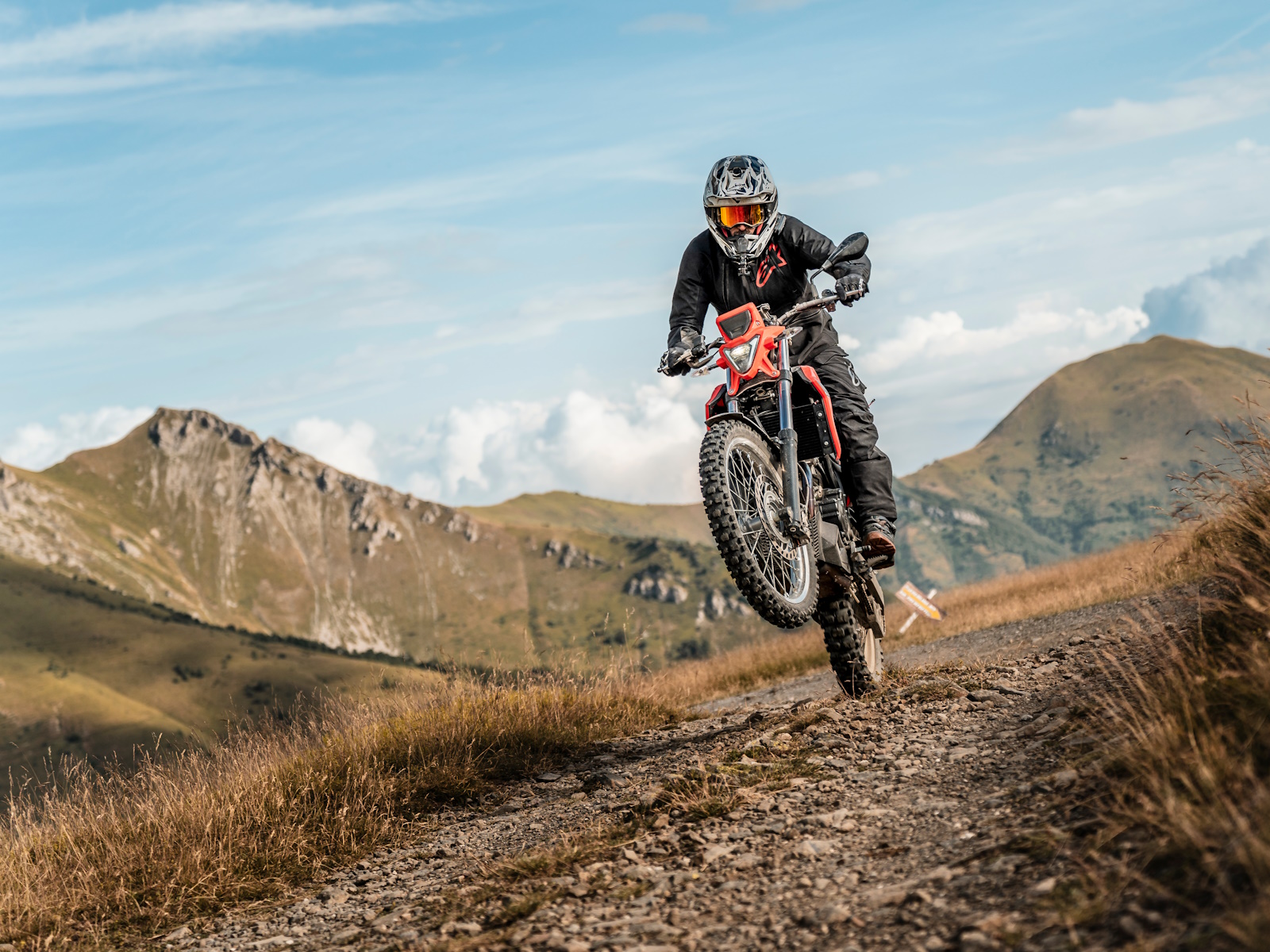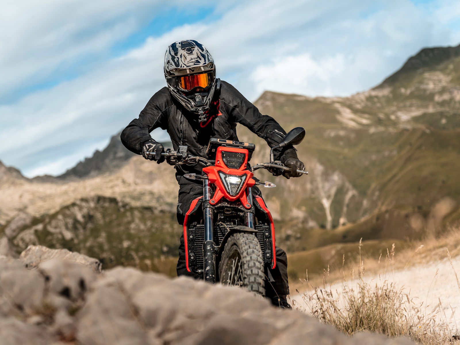 The Alp X model is a more urban based model, while it can still handle tough trail riding, the wheel package and bodywork design make it a model that will be used for all-around on and off-road riding in the more populated areas.