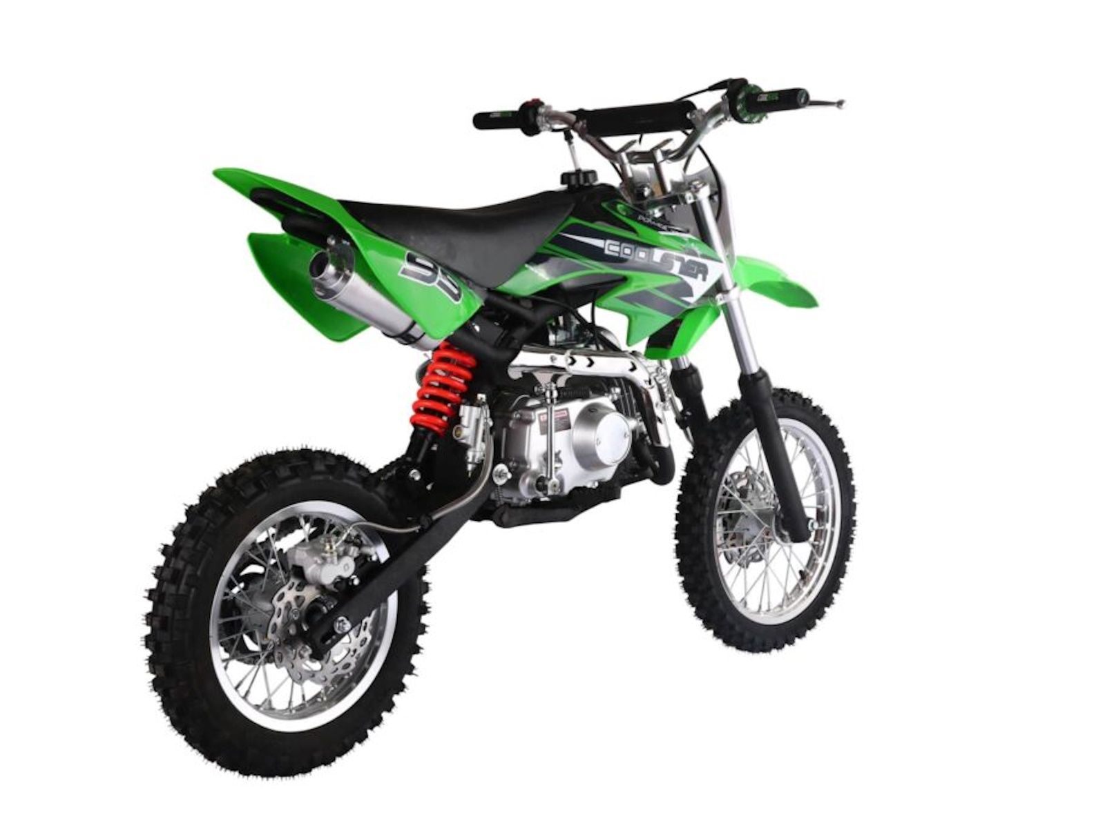 Our Coolster 214S-2 dirt bike is the semi-automatic version of the QG-214-2. The unit comes with thicker fork tubing, stiffer springs, and a taller gripper seat to ensure durability and performance while you stay comfortable. Powered by our 125cc semi-automatic engine, the 214S-2 is sure to shred up the trails with top speeds of 30 MPH.