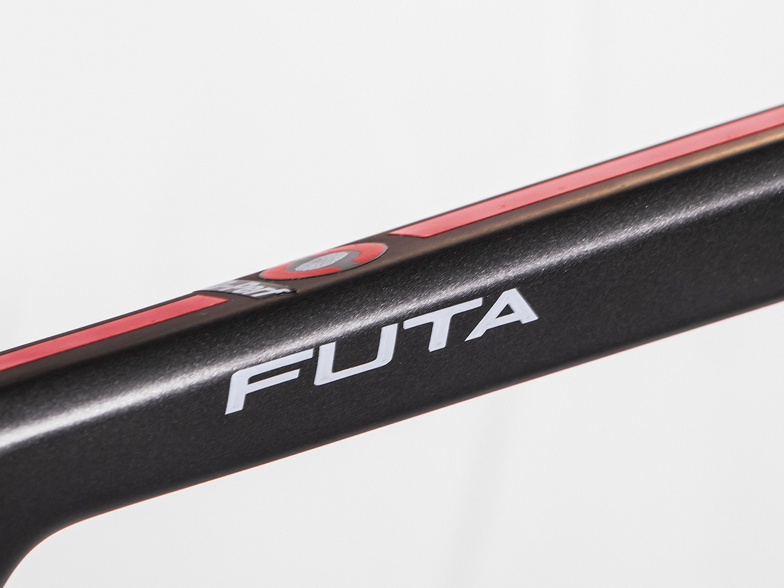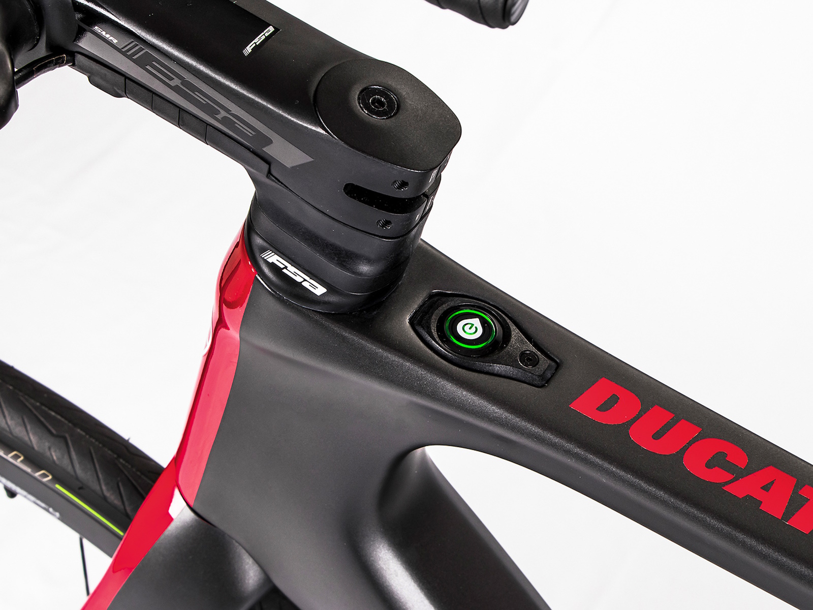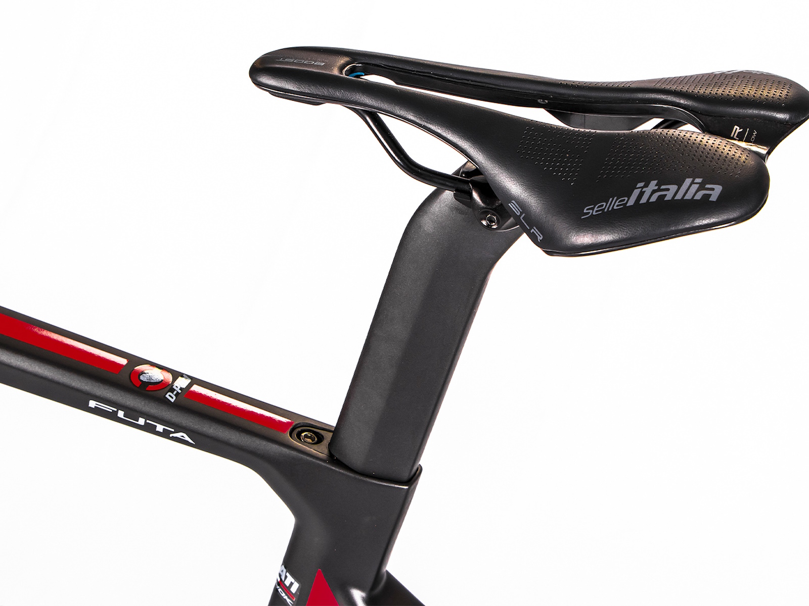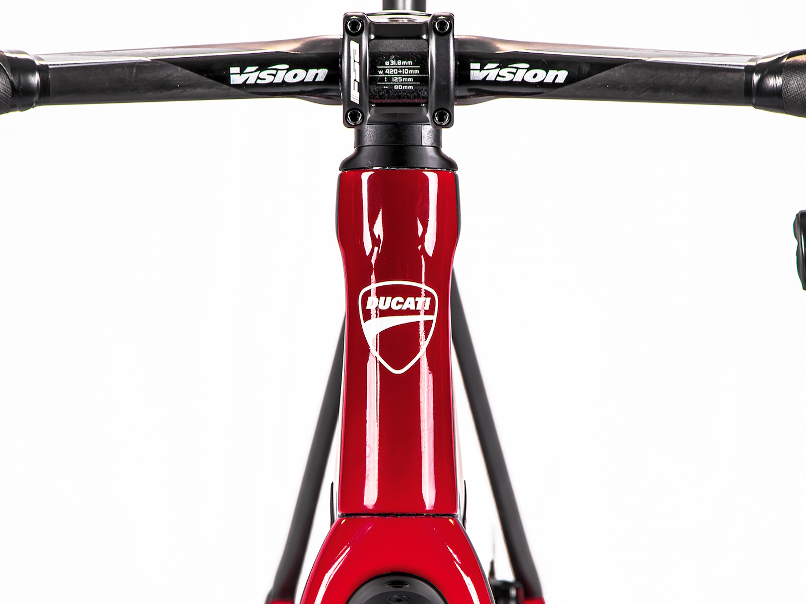 The compact rear stay, with lowered sheaths, makes the bike comfortable, while generating less aerodynamic drag. The rear triangle is rigid laterally, precisely by virtue of the choice of the position of the sheaths and favours a better transmission of power to the wheel, as well as increasing the responsiveness of the bike. Down tube, seat post and fork sliders are expertly profiled and their reliefs are highlighted by the play of colors of the livery which sees grey and black as the main colors with accents in Ducati Red.