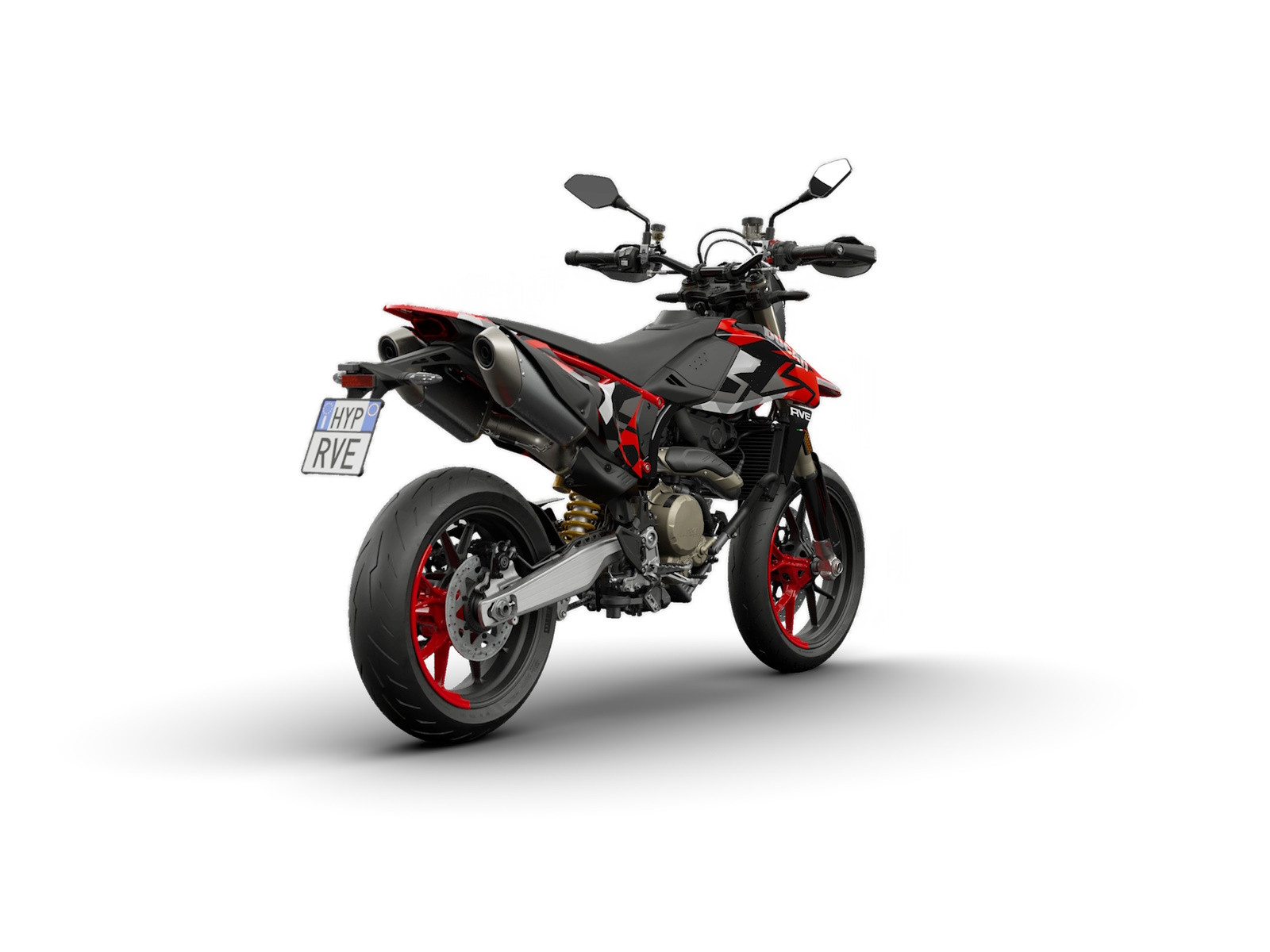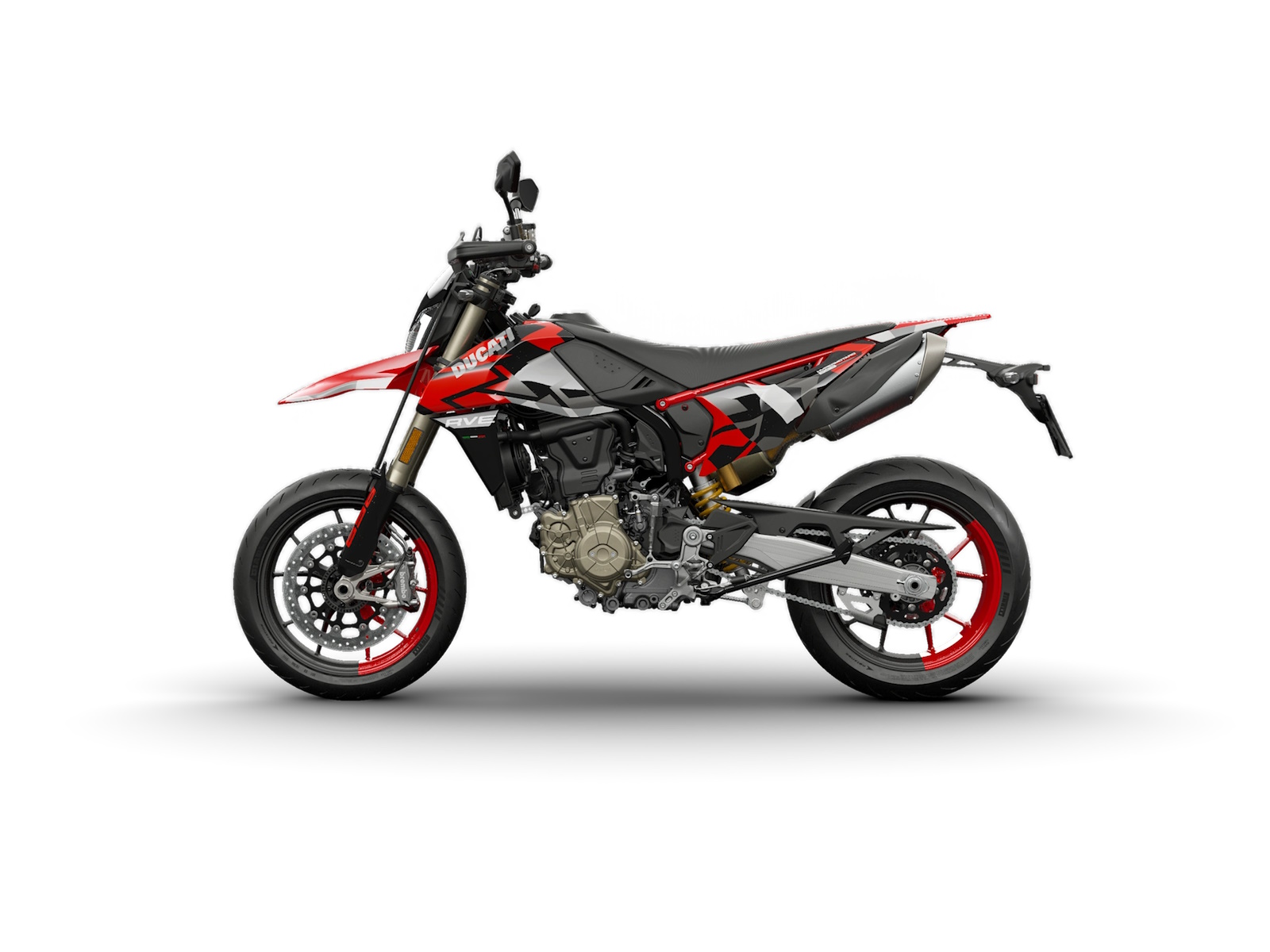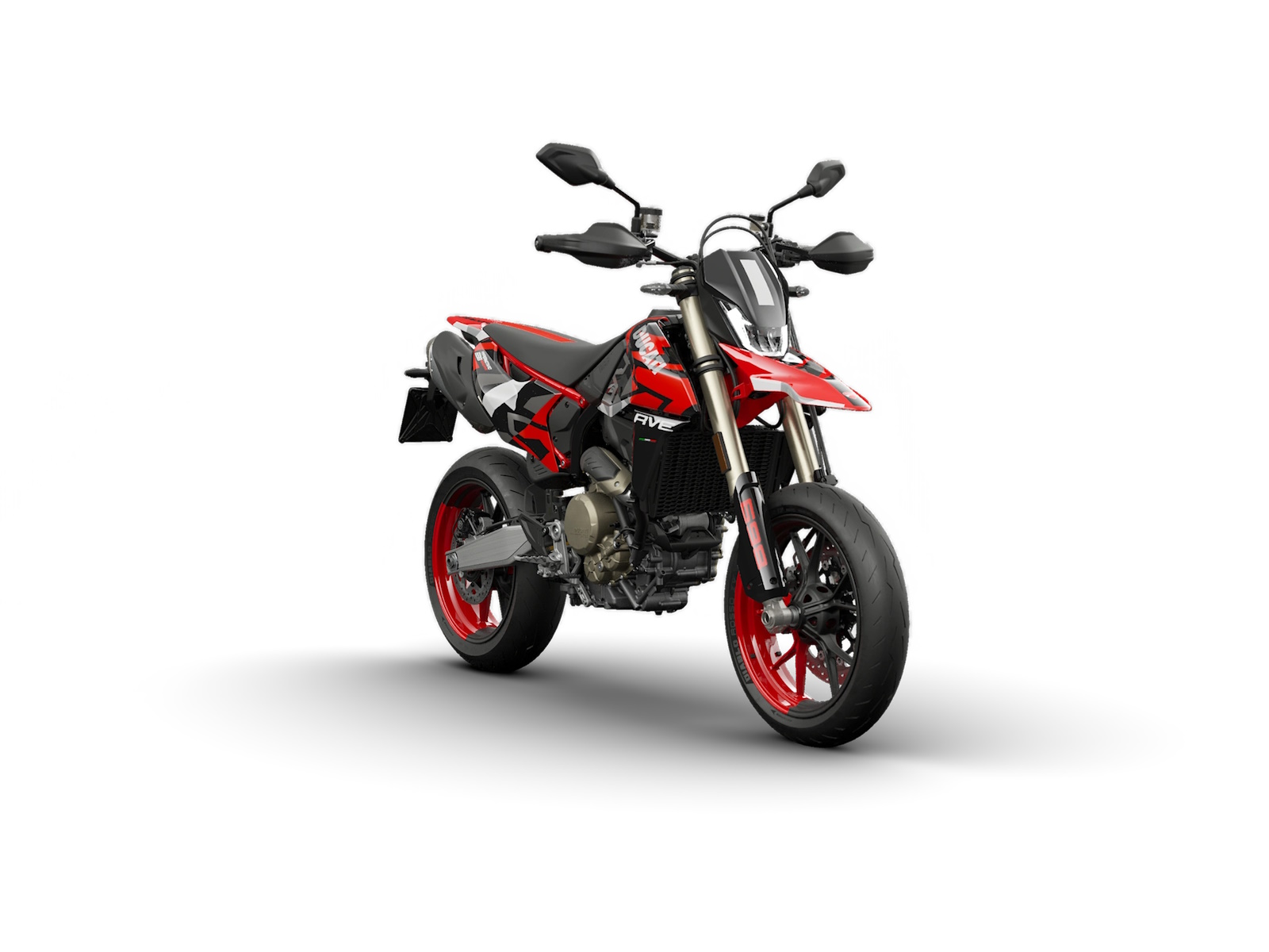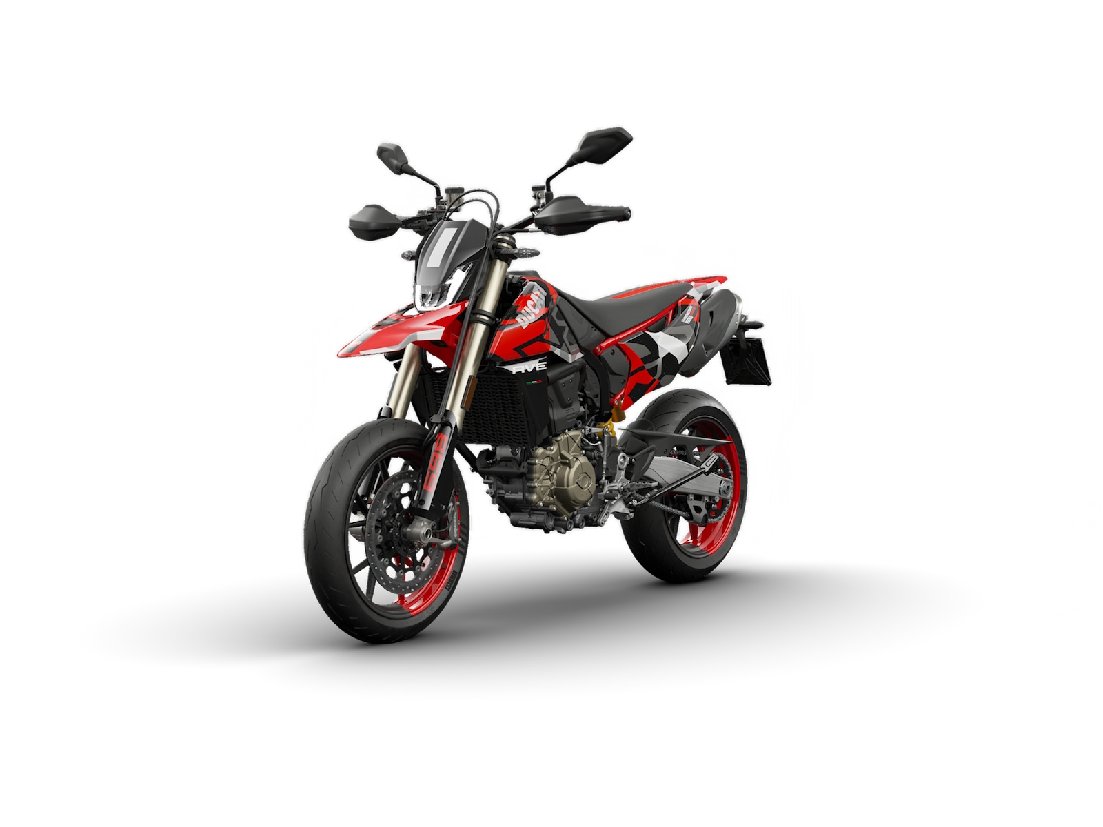 The "Graffiti" livery was created with the use of water-based decals with the aim of obtaining a refined and complex graphic inspired by street art works. The standard version is distinguished by the essentiality of the mass-colored Ducati Red plastics, typical of the supermotard world.