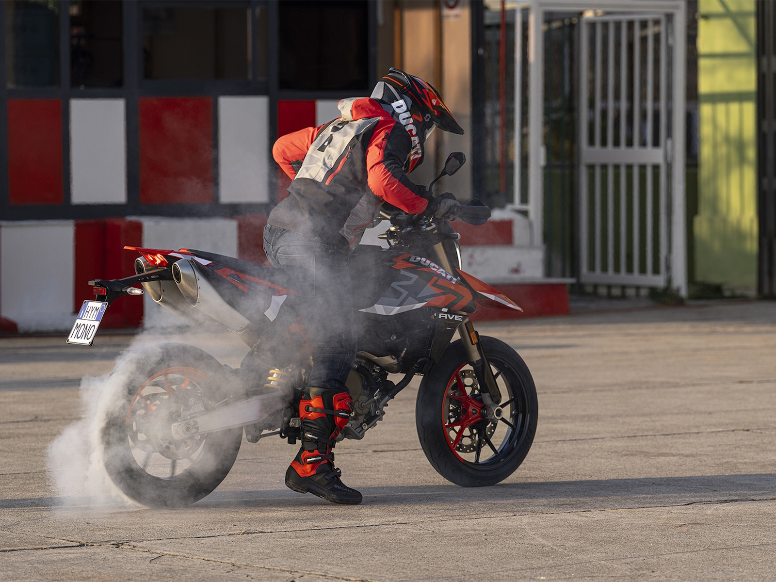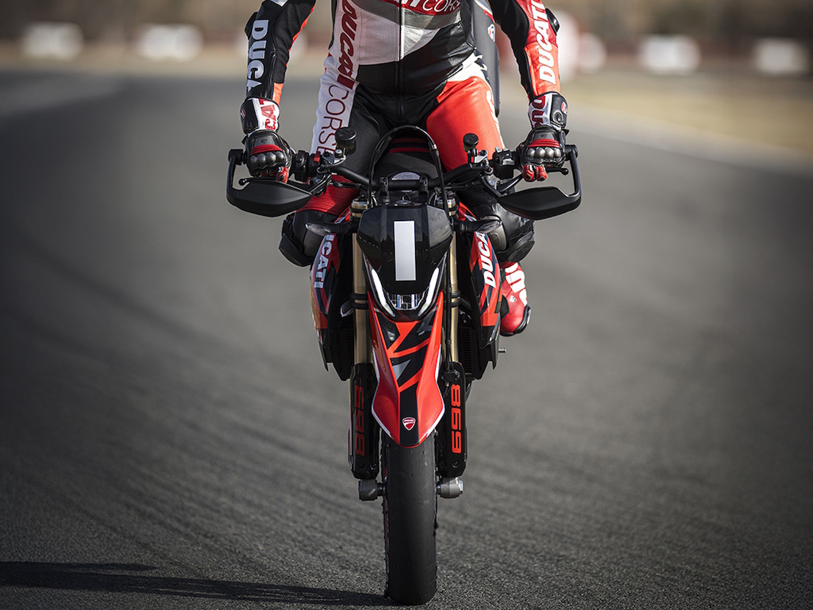 The first single-cylinder road-going Supermotard by Ducati, born with just one aim – to transmit excitement, dominating the scene.