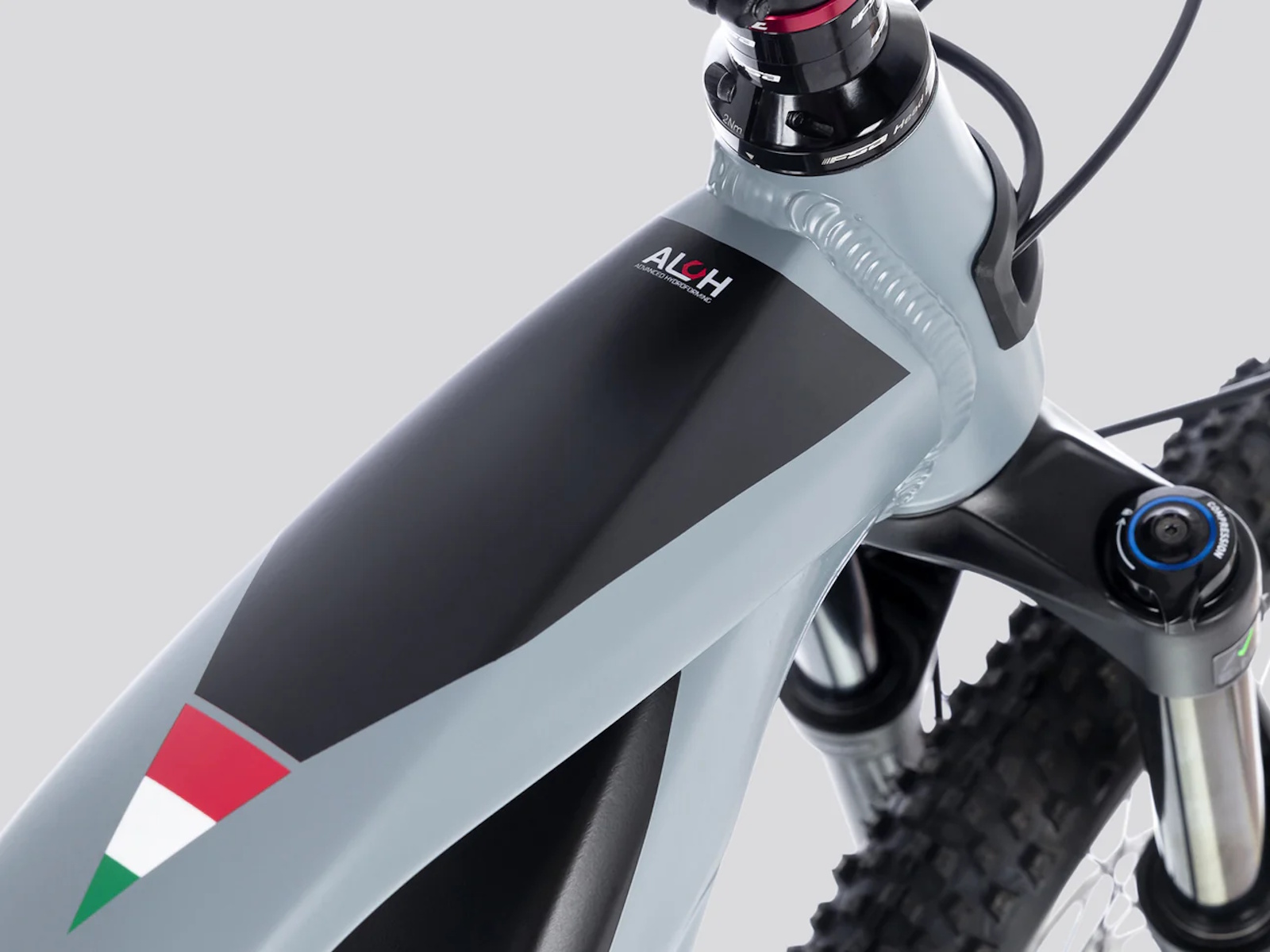 The rear triangle strut of Fantic e-MTBs is made from an advanced fiber-reinforced technopolymer, a technical choice that combines design, lightness and strength.