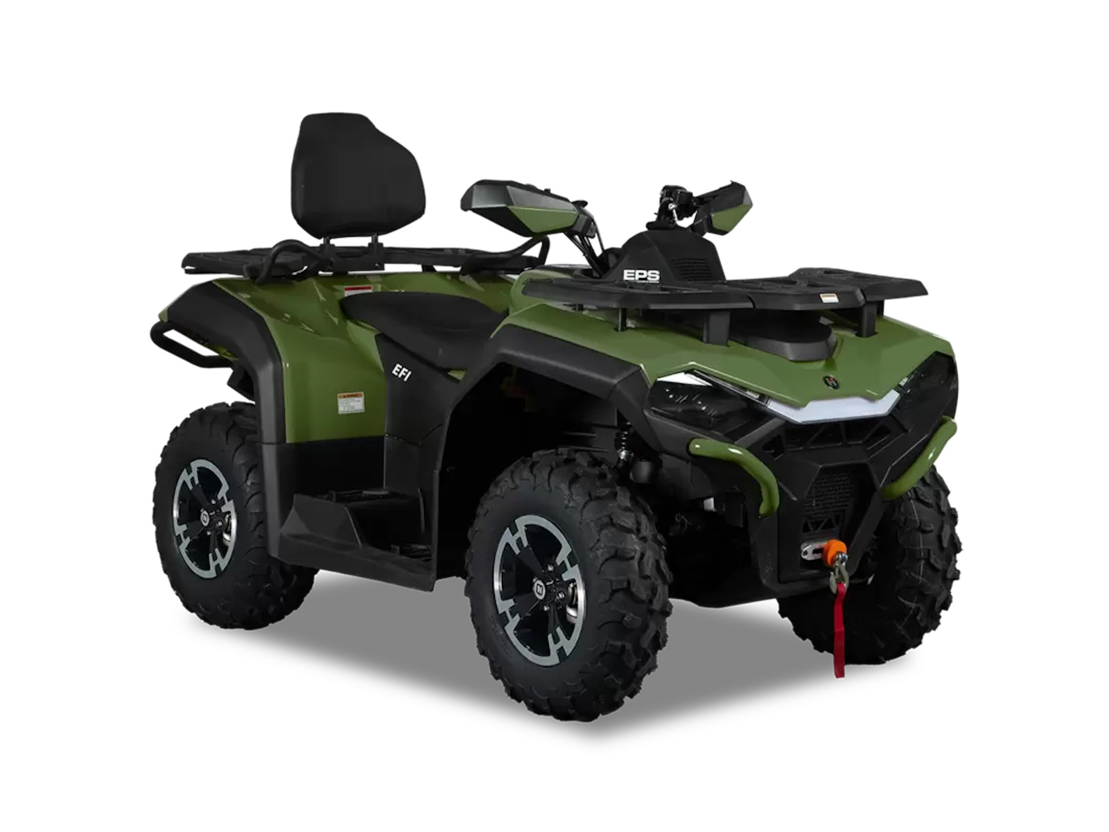 The Guardian 750L is a rugged 2-up ATV built for two riders, featuring a comfortable backrest, heated hand grips, and a heated seat for added comfort on any ride. It includes a 7" full-color TFT digital display with rider info, altitude gyroscope, and tire pressure sensor, along with selectable 2WD/4WD and front and rear locking differentials for superior control. Equipped with a 2,500 lb. winch, front and rear racks, LED high/low beam headlights, and turn signals, the Guardian 750L is ready for any terrain and condition.