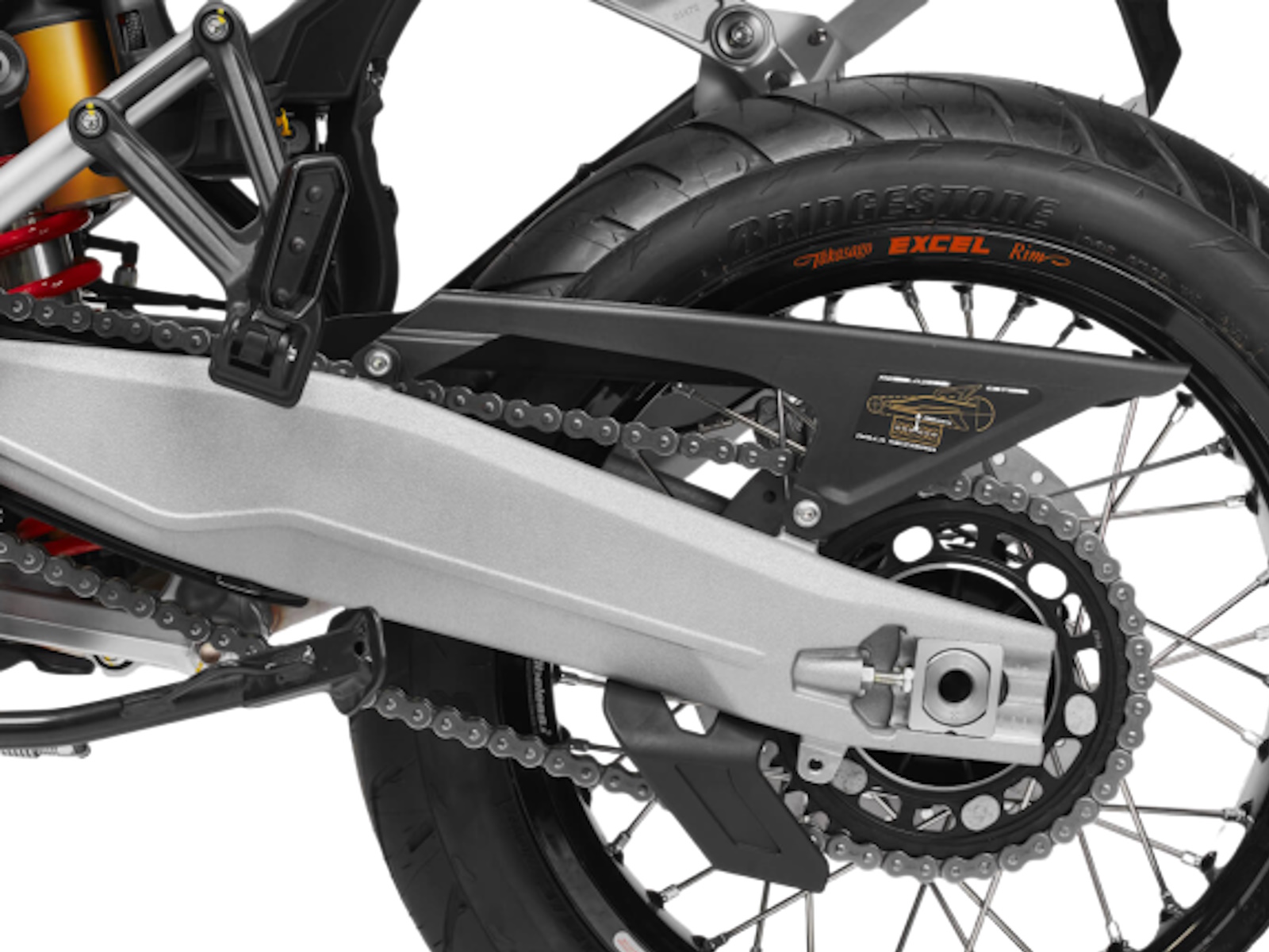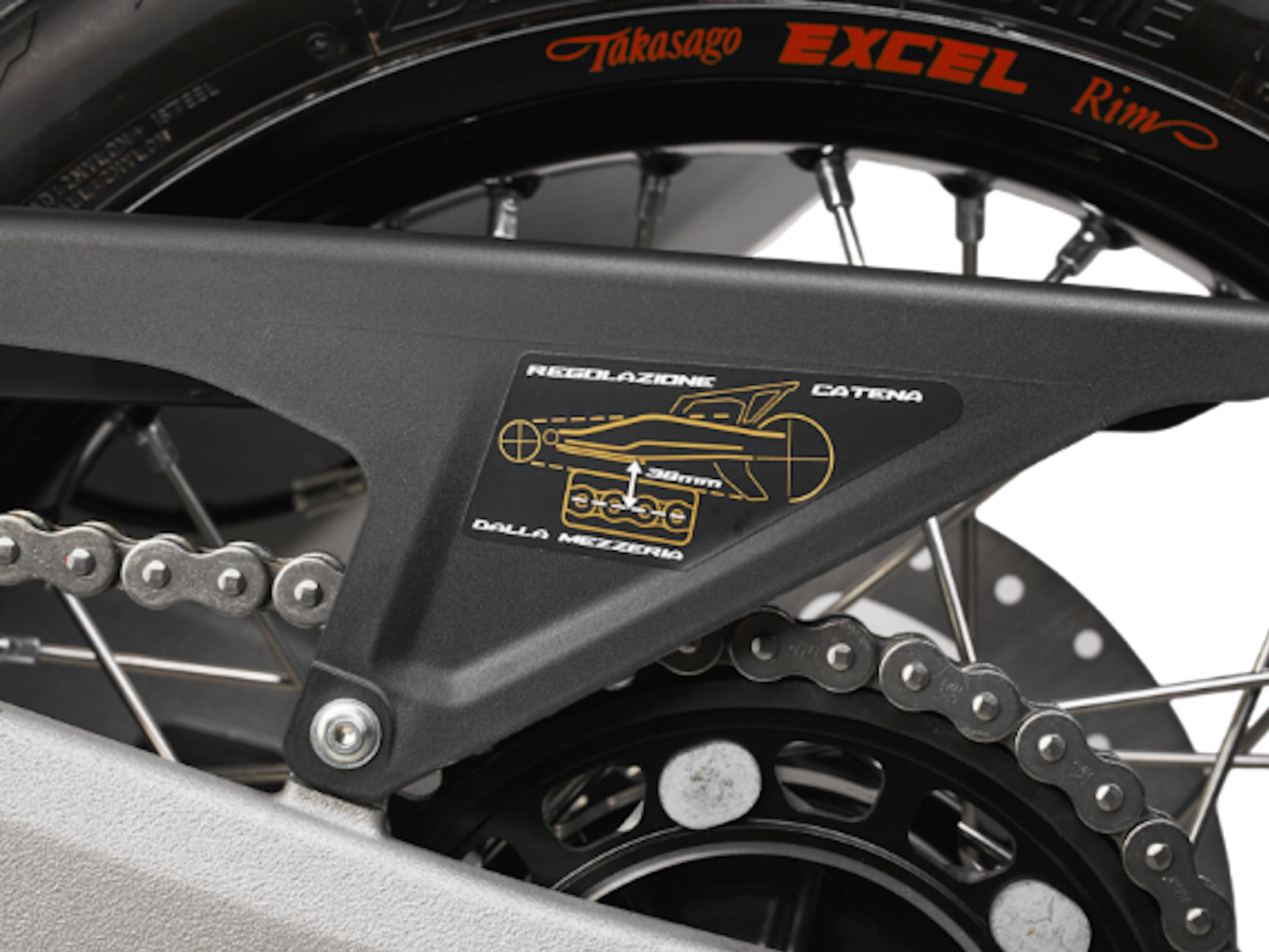 The frame of the Enduro Veloce exploits a modern perimetral structure with a closed double cradle design developed to offer perfect balance and the best compromise in terms of stability during high-speed road use and the ability to absorb energy during off-road use. The Sachs fork, which has 48 mm stanchions, is adjustable in its compression, rebound, and pre-load, with a wheel travel of 210 mm. The adjustable Sachs mono-shock guarantees rear wheel travel of 210 mm and is connected to the suspension via a progressive linkage.