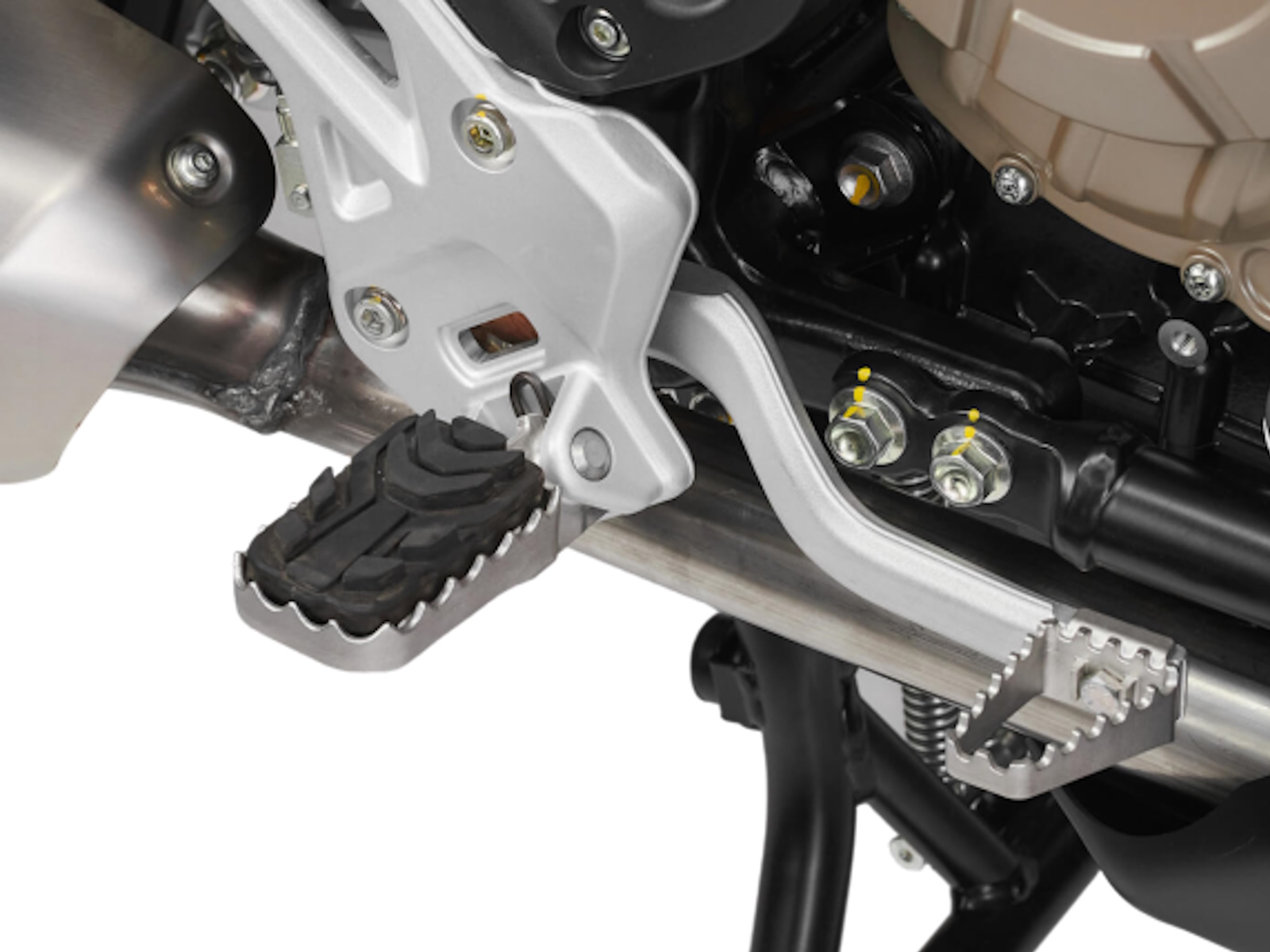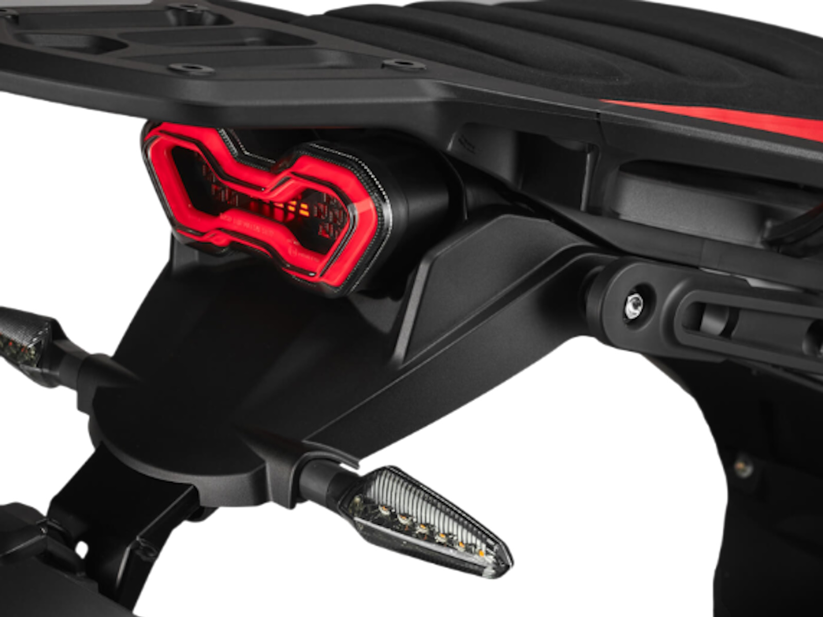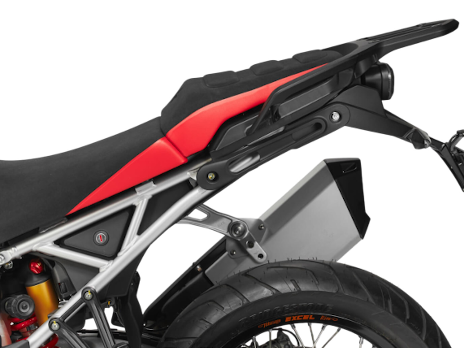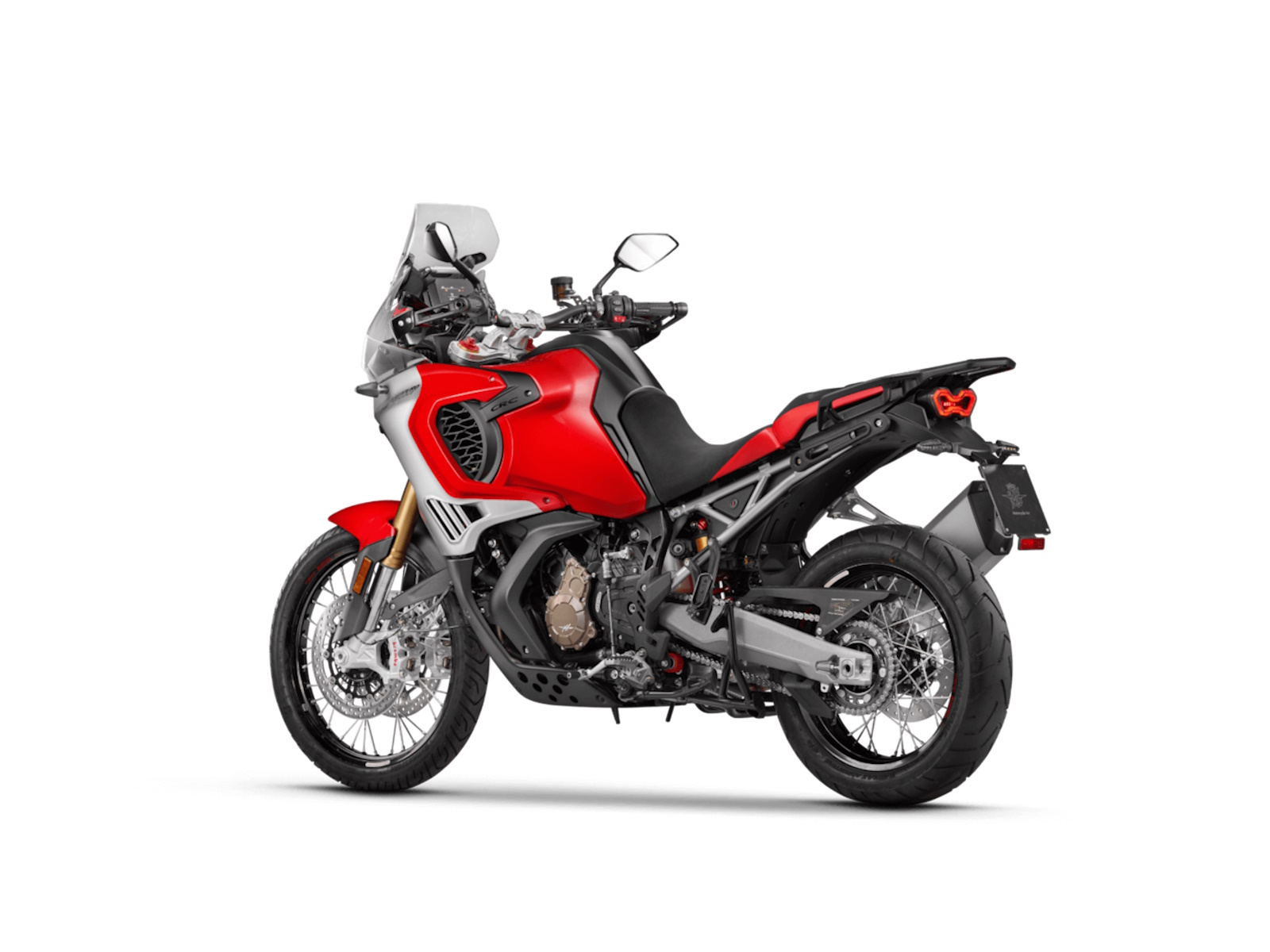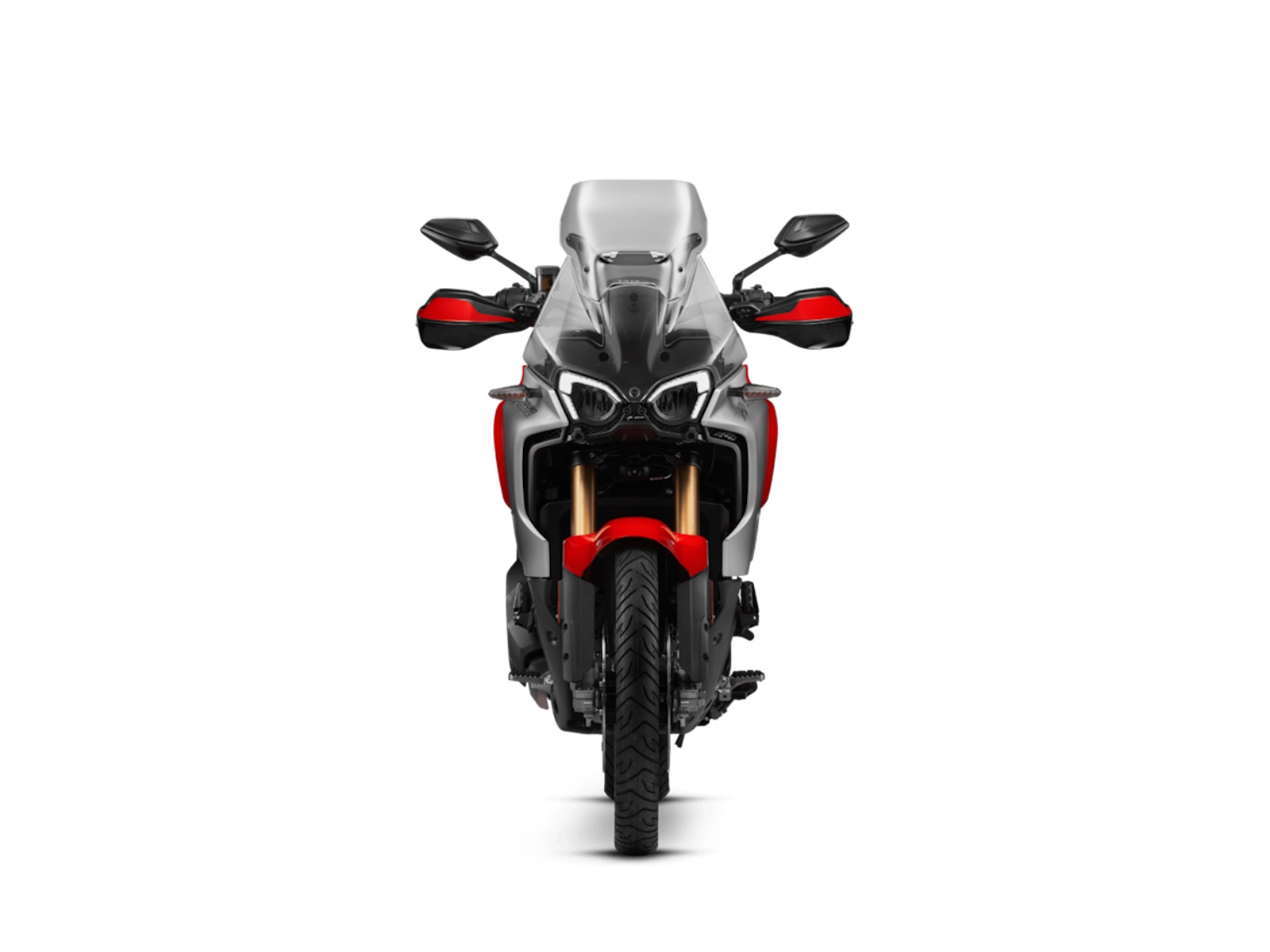 The design of the ergonomic triangle has been studied to offer maximum comfort to the rider and passenger. Seat height is 870 mm, but the adjustable seat means this can be lowered to 850 mm. The shape and padding of the seat have been carefully studied to ensure comfort and adequate support in all conditions of use, including long-range highway travel. Ground clearance is 230 mm, ideal for off-road use.