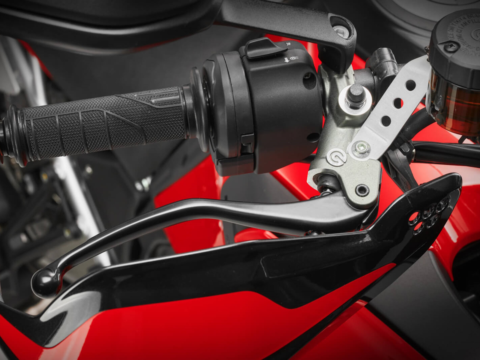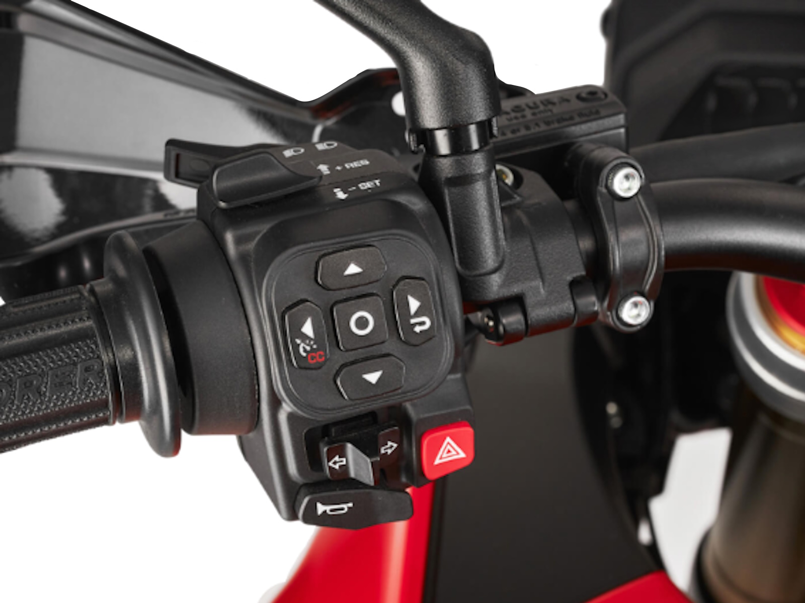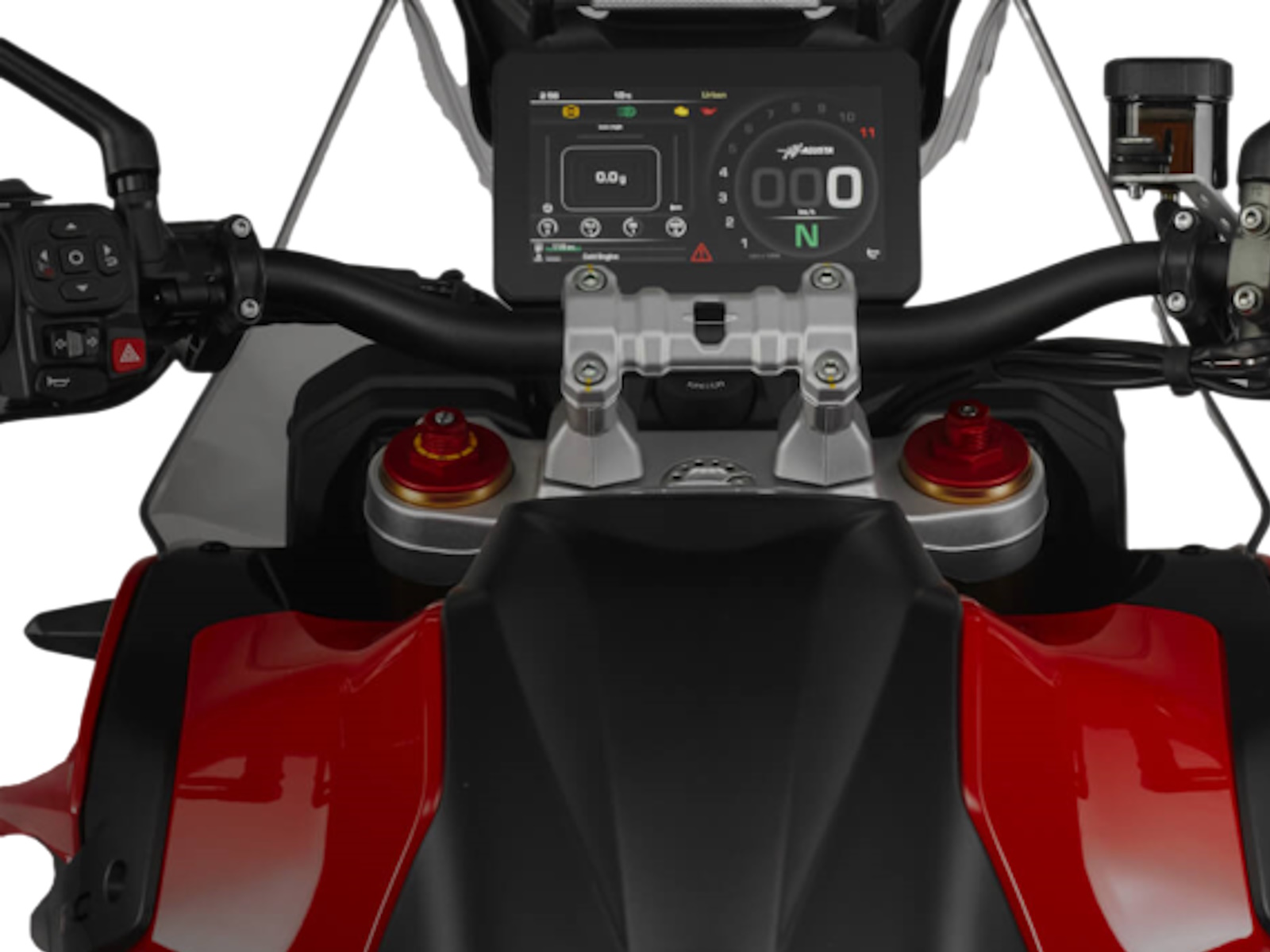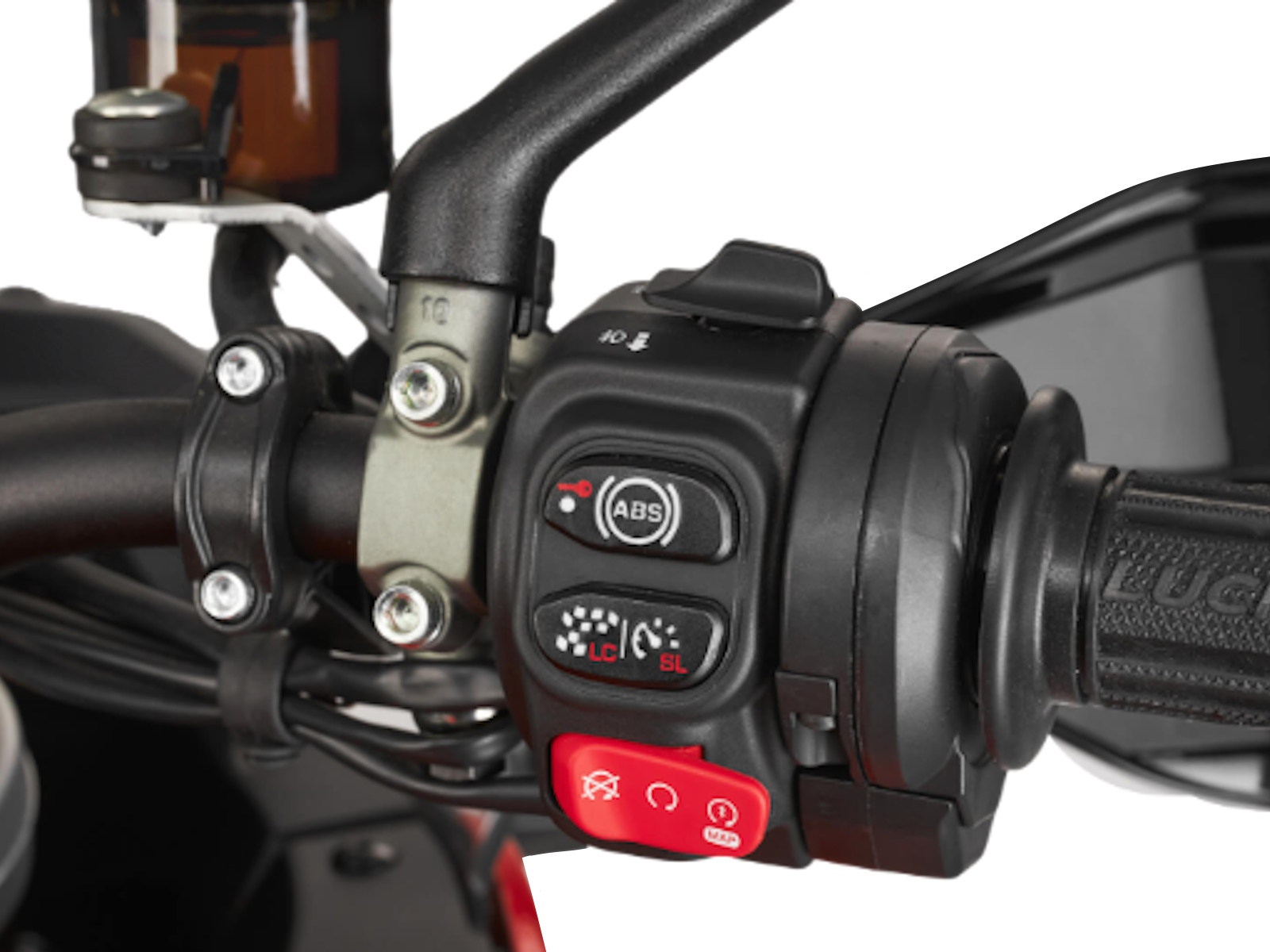 Management System: Integrated ignition - injection system MVICS 2.1 (Motor & Vehicle Integrated Control System) with three injectors. Engine control unit Eldor Nemo 2.3, throttle body bore 47 mm diameters full ride by wire Mikuni, pencil-coil with ion-sensing technology, control of detonation and misfire. Torque control with four maps. Traction Control with eight levels of intervention with lean angle sensor and inertial measurement unit (IMU)