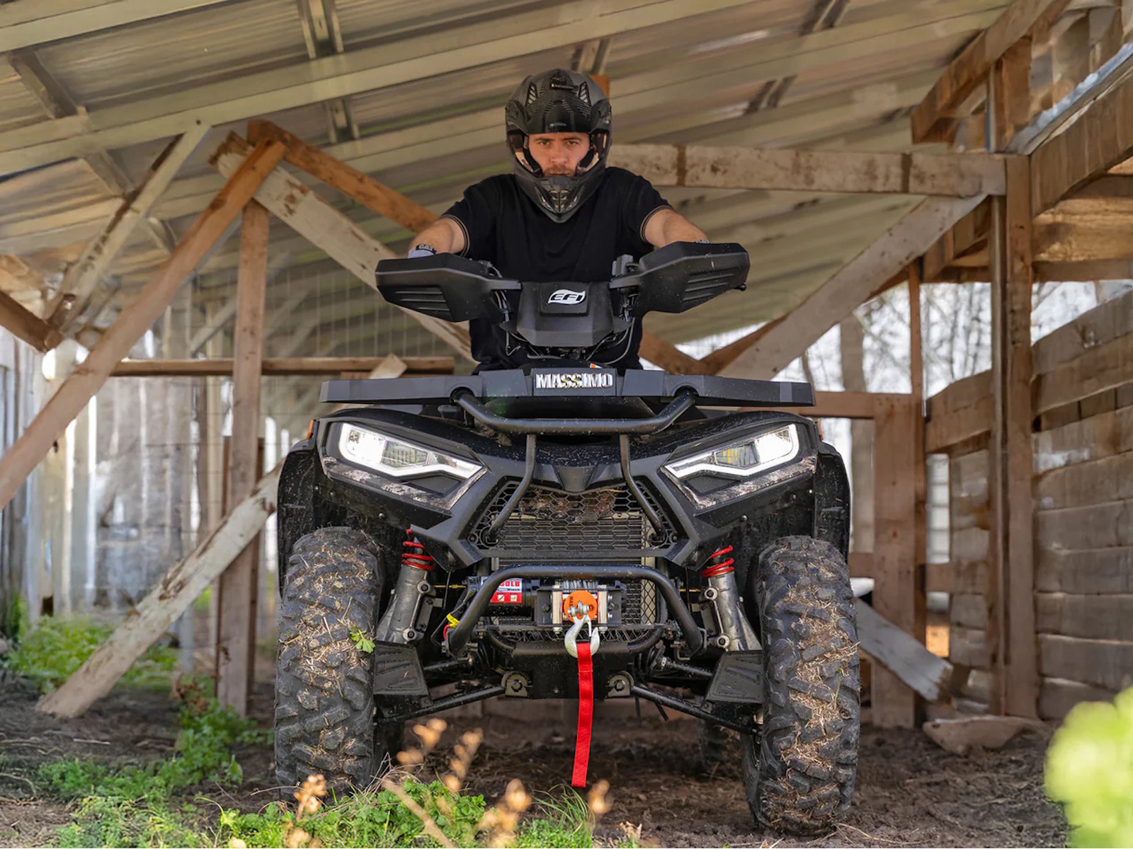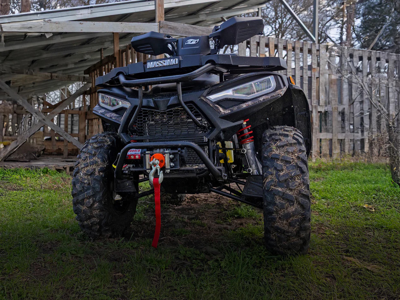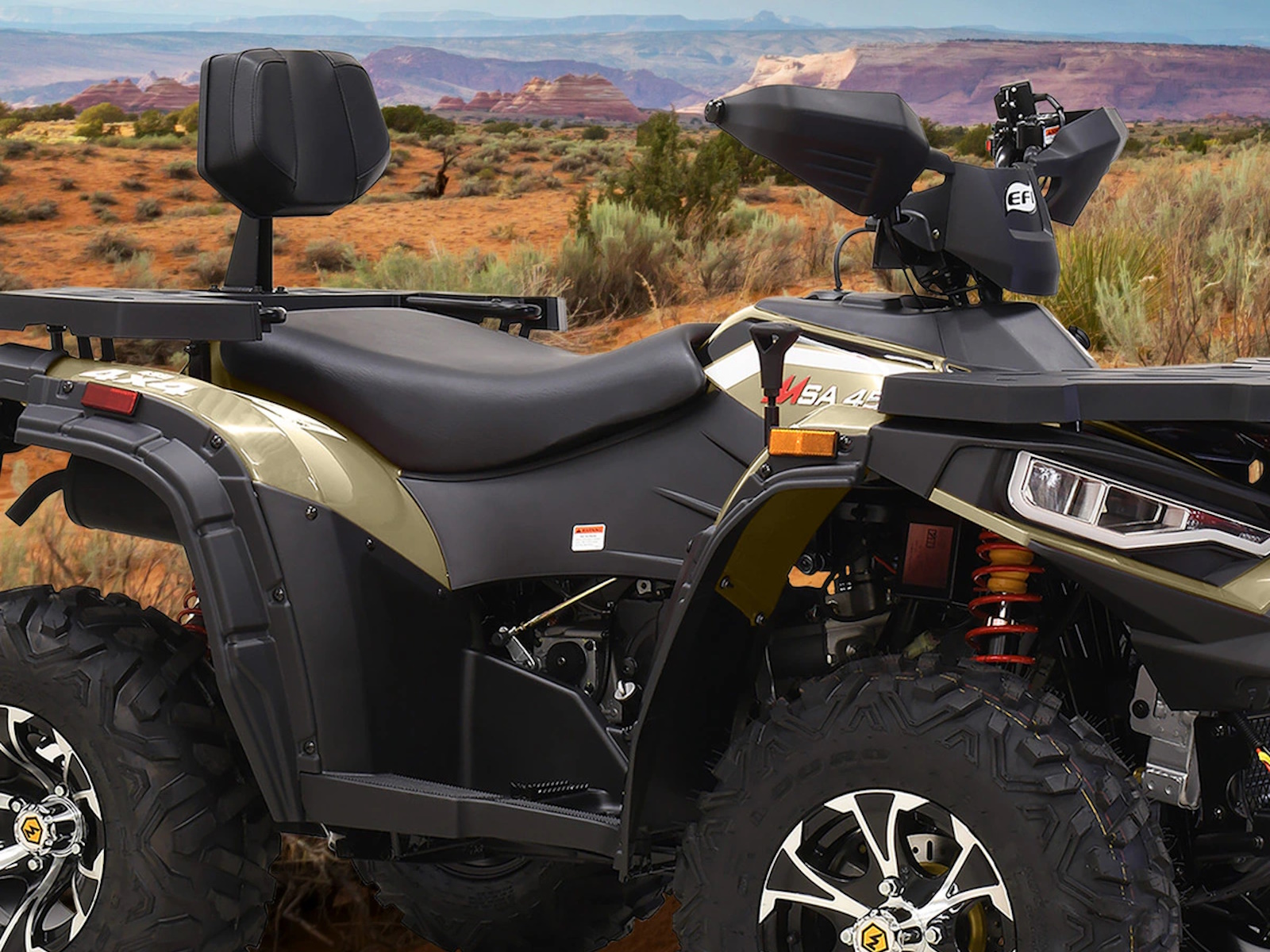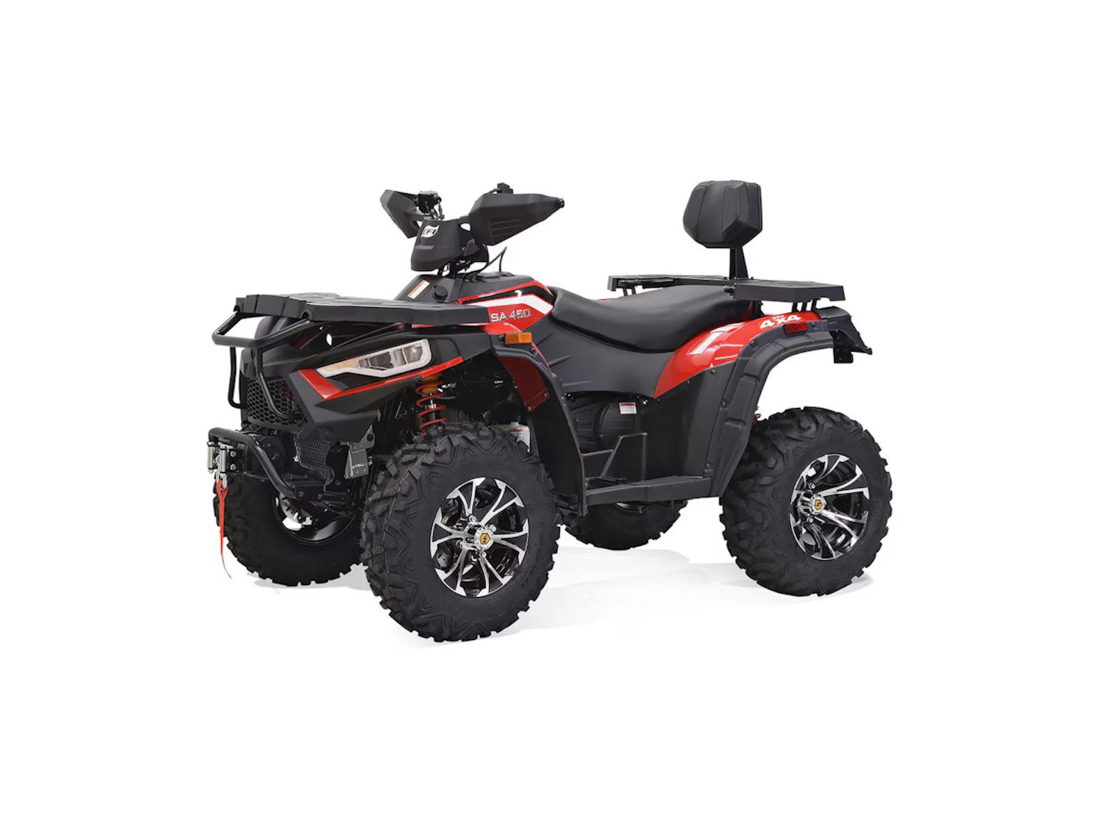 Tackle your to-do list with the Massimo MSA 450F, a mid-size 4x4 ATV that delivers the perfect blend of power and value.1 It’s built around a durable 352cc, 25 HP fuel-injected engine that provides reliable performance for work or play.2 With On-Demand 4WD, 11 inches of ground clearance, and rugged 25-inch tires, you can confidently navigate challenging terrain.3 This ATV comes ready to work with a 3,000lb winch, a comfortable passenger backrest, durable front and rear racks, and a protective front bumper, offering a feature-packed machine at an unbeatable price.